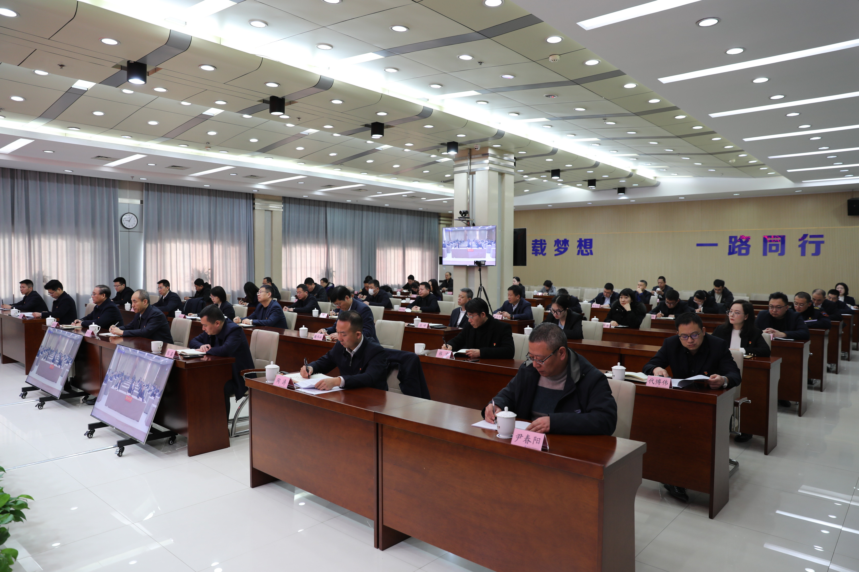 會議采取主分會場、現(xiàn)場和視頻相結(jié)合的方式進(jìn)行,第五輪巡察組全體成員,集團(tuán)公司紀(jì)委副書記、紀(jì)委機(jī)關(guān)各室、總部各部室主要負(fù)責(zé)人,巡察辦全體人員,共52人在主會場參會,被巡察單位領(lǐng)導(dǎo)班子全體成員、中層正副職共174人在分會場參加會議。