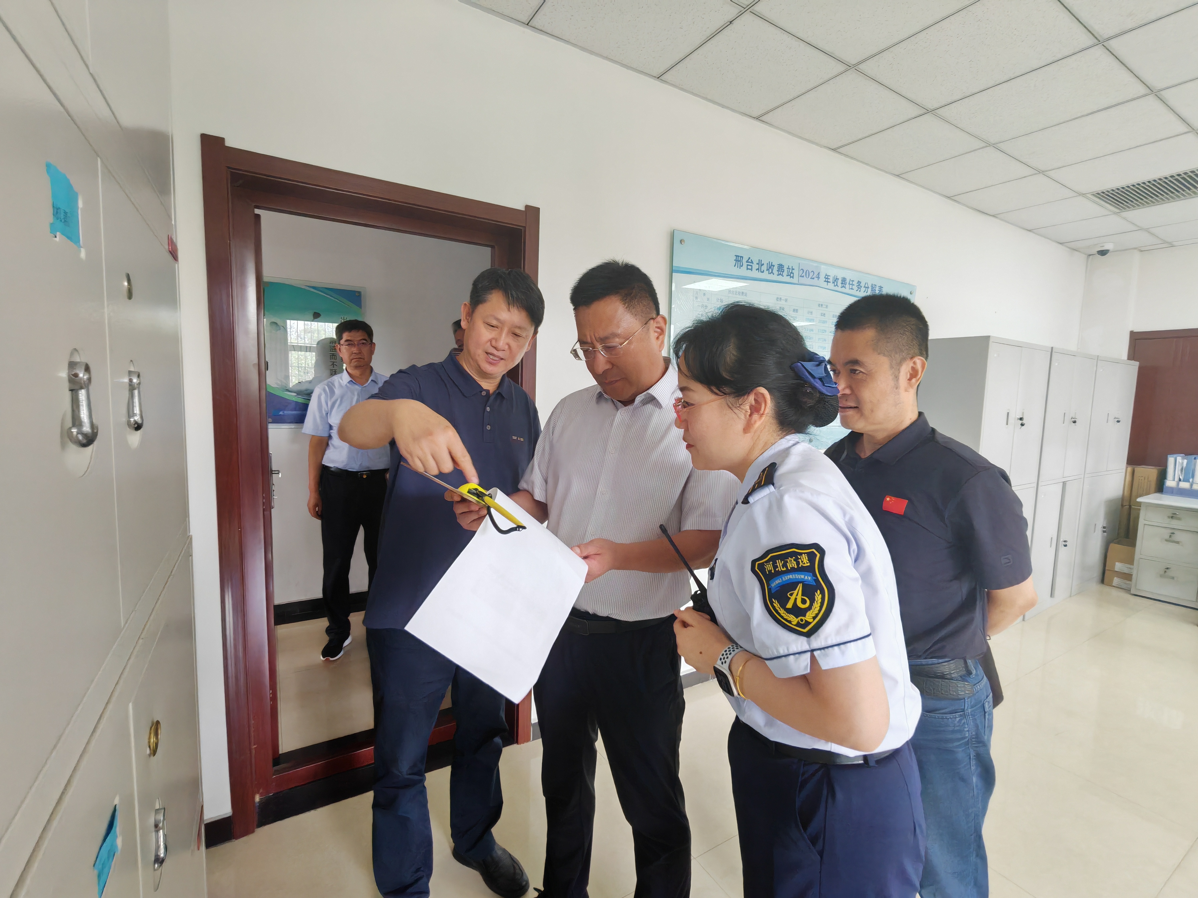 在石安分公司總部,吳曉輝實(shí)地參觀監(jiān)控大廳、文化展廳、新媒體直播間和趙鵬祥創(chuàng)新工作室,聽取石安分公司黨業(yè)融合、安全生產(chǎn)、收費(fèi)主責(zé)、工程管理和多元發(fā)展等方面工作匯報(bào),詳細(xì)了解收費(fèi)主業(yè)、多元發(fā)展、黨建、宣傳、科技創(chuàng)新等工作?,F(xiàn)場察看了解原臨漳收費(fèi)站站區(qū)基本情況,并到邢臺北、鄴城收費(fèi)站聽取收費(fèi)運(yùn)營匯報(bào),詳細(xì)詢問安全生產(chǎn)、隊(duì)伍建設(shè)、車道設(shè)置、收費(fèi)任務(wù)等情況。