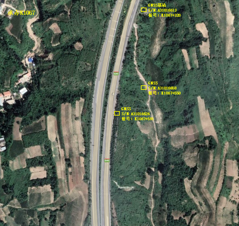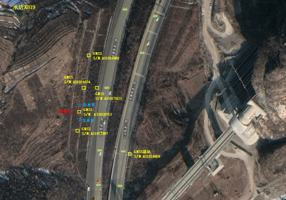 通過多次與設計單位現(xiàn)場勘驗,調(diào)查邊坡地質(zhì)狀況、受力分析、病害類型等內(nèi)容,最終選取承唐段K819+000、承赤段K1034+100、K1067+600共計3處邊坡,安裝了11臺GNSS監(jiān)測坡體表面位移設備、1臺雨量計和2臺淺層含水率監(jiān)測儀。目前,該項目正在通過三維無人機在監(jiān)測平臺內(nèi)建立模型圖和錄入原始各項數(shù)據(jù)。