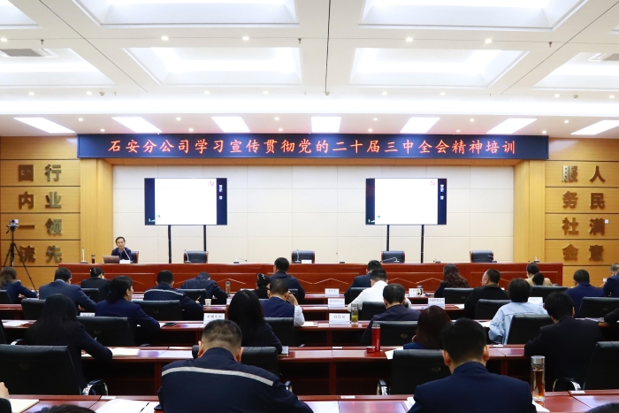 10月18日,石安分公司舉辦學(xué)習(xí)貫徹黨的二十屆三中全會精神培訓(xùn)班。分公司總經(jīng)理楊龍主持并講話,紀(jì)委書記任忠杰參加。