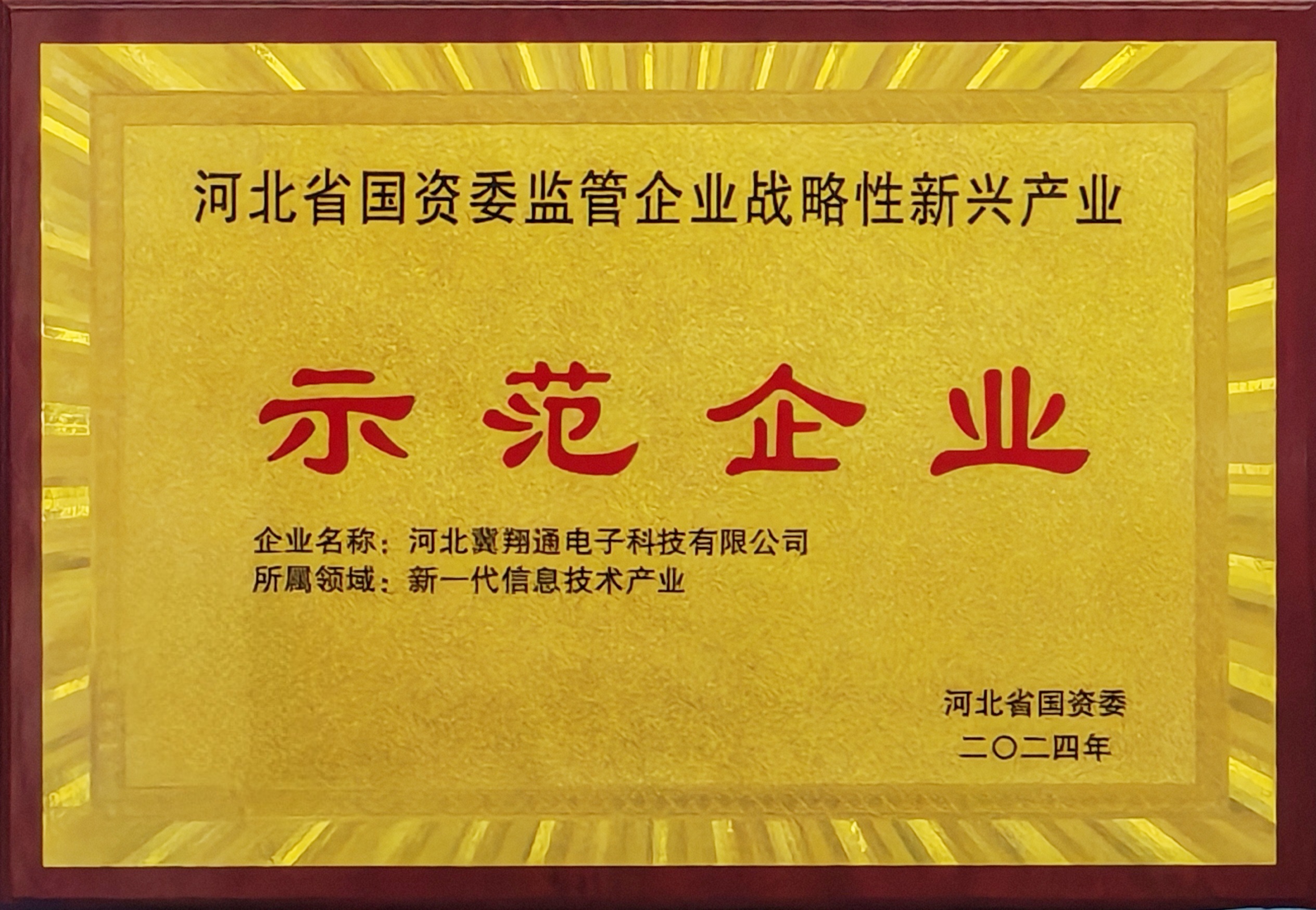 近日,河北省國資委發(fā)布監(jiān)管企業(yè)戰(zhàn)略性新興產(chǎn)業(yè)示范企業(yè)和示范項目(2024)名單,河北冀翔通電子科技有限公司入選新一代信息技術(shù)產(chǎn)業(yè)示范企業(yè),是此產(chǎn)業(yè)中唯一一家高速行業(yè)企業(yè)。