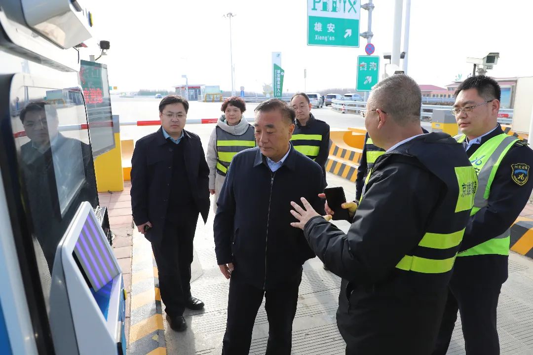 楊榮博一行到雄安北收費(fèi)站聽(tīng)取收費(fèi)機(jī)器人運(yùn)行、無(wú)人值守站規(guī)劃建設(shè)情況介紹,察看辦公場(chǎng)所、職工宿舍升級(jí)改造等情況;實(shí)地走訪監(jiān)控中心,聽(tīng)取智慧化平臺(tái)建設(shè)、直播間打造、高速預(yù)警系統(tǒng)功能介紹;了解機(jī)關(guān)職工活動(dòng)室等建設(shè)情況。