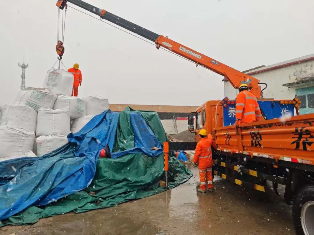 三是精準(zhǔn)施策,高效作業(yè)。雨雪初降時(shí),各養(yǎng)護(hù)隊(duì)按照“預(yù)防為主、即下即清”原則,融雪劑撒布車對(duì)路面進(jìn)行預(yù)撒和補(bǔ)撒融雪劑,防止雨雪凍結(jié)。雨雪交織下橙衣身影與轟鳴機(jī)械協(xié)同作戰(zhàn),警示燈與反光服在風(fēng)雪中交織成最美的安全防線。