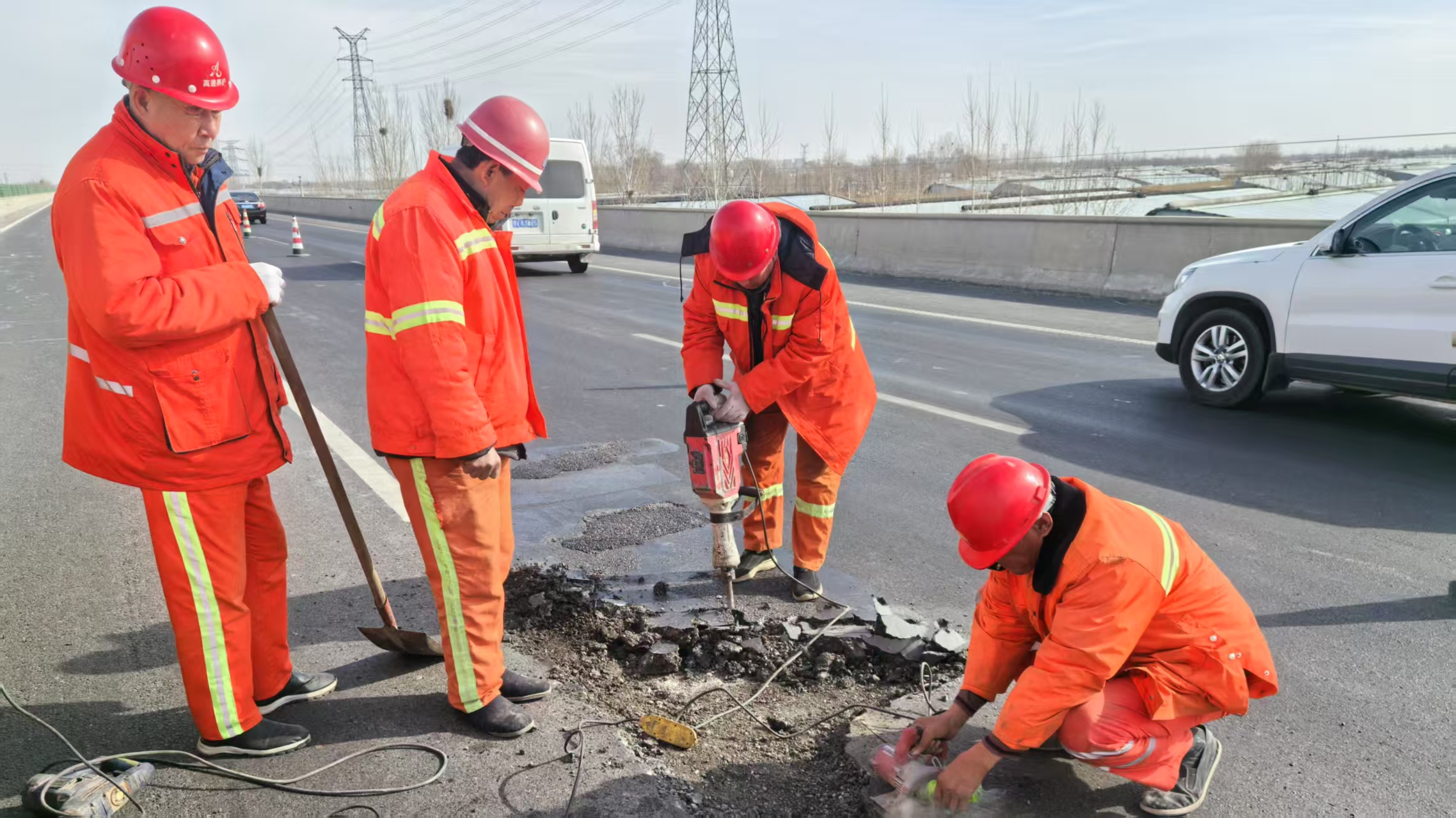 受本次雨雪天氣影響,大廣高速1516+200北京方向第二車道處路面出現(xiàn)較大坑槽,存在安全隱患,為保證大廣高速道路的安全暢通,衡水分中心饒陽養(yǎng)護(hù)隊(duì)迅速組織人員開展坑槽修復(fù)施工,于3月3日完成修復(fù)。