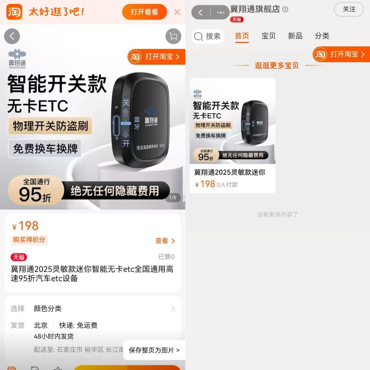 這一舉措是冀翔通公司繼2024年5月開通抖音直播銷售ETC、2025年3月拓展快手直播銷售渠道后,進(jìn)一步整合電商資源、拓寬線上發(fā)行渠道的重要戰(zhàn)略布局。通過入駐天貓和京東兩大頭部電商平臺,觸達(dá)更廣泛的用戶群體,提供更便捷的ETC線上購買、自助激活服務(wù),真正實現(xiàn)“足不出戶辦理ETC”的便民目標(biāo)。