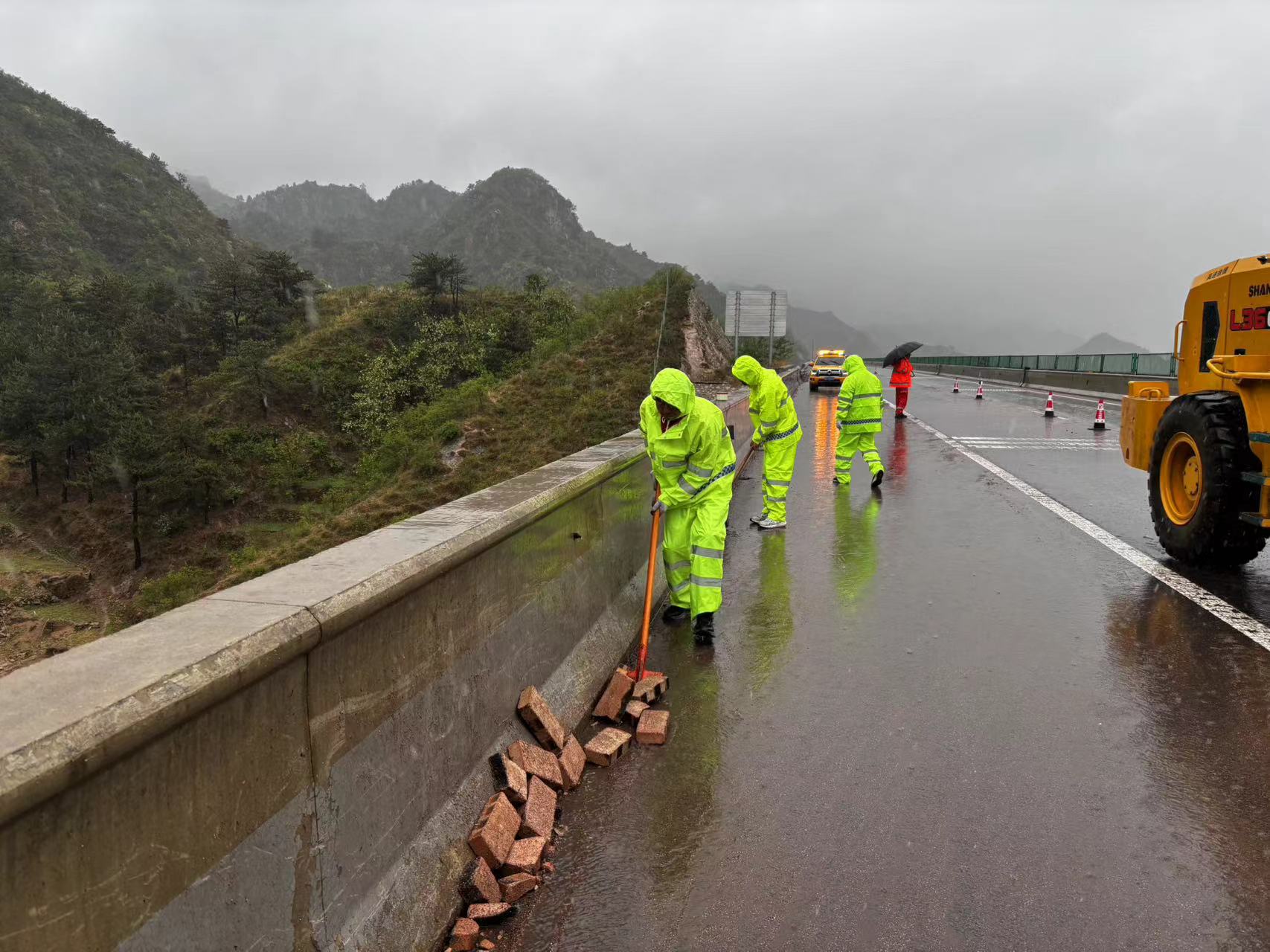 坡倉(cāng)養(yǎng)護(hù)隊(duì)接報(bào)后,即刻啟動(dòng)應(yīng)急預(yù)案,火速集結(jié)人員與設(shè)備奔赴現(xiàn)場(chǎng)。盡管暴雨傾盆、現(xiàn)場(chǎng)復(fù)雜,隊(duì)員們毫無(wú)懼色,迅速投身救援與清理工作。 抵達(dá)現(xiàn)場(chǎng),隊(duì)員們迅速在周邊設(shè)置警示標(biāo)志,引導(dǎo)車(chē)輛減速,防止二次事故。隨即采用人機(jī)結(jié)合的方式,全力清理散落磚頭。大雨不停,大型機(jī)械冒雨作業(yè),搬運(yùn)大塊磚石;養(yǎng)護(hù)人員則俯身仔細(xì)清理小塊磚石,不放過(guò)任何安全隱患。 作業(yè)中,隊(duì)員們憑借專(zhuān)業(yè)技能與豐富經(jīng)驗(yàn),合理安排流程,提升清理效率。盡管雨水模糊視線、地面濕滑難行,大家仍齊心協(xié)力、爭(zhēng)分奪秒,只為盡快恢復(fù)道路暢通,保障司乘安全。