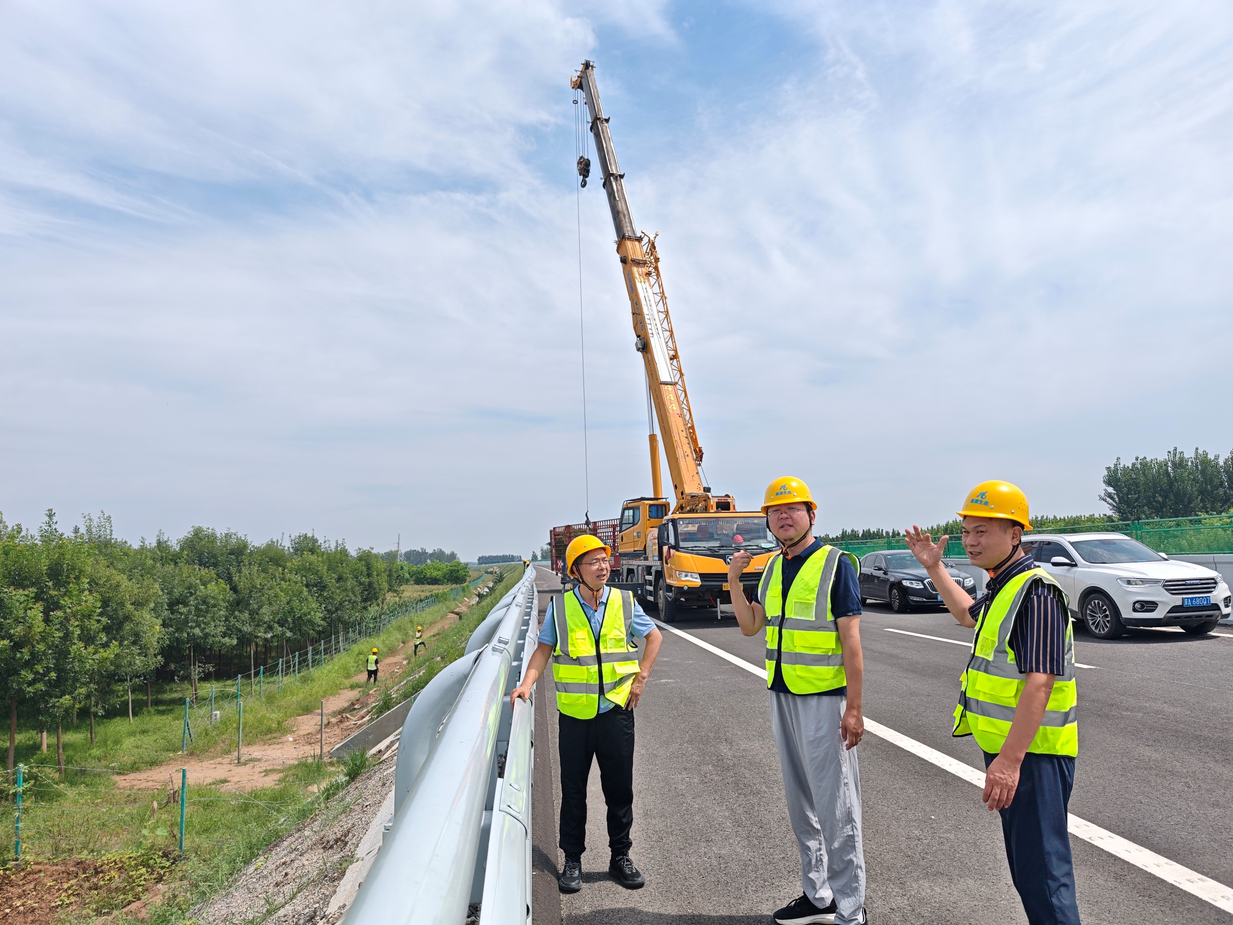 檢查組一行抵達(dá)項(xiàng)目現(xiàn)場后,旋即深入東光東收費(fèi)站互通、主線K105處施工現(xiàn)場,進(jìn)行了多維度、高標(biāo)準(zhǔn)的全面嚴(yán)格查驗(yàn)。楊永占詳細(xì)地詢問了施工安全、施工進(jìn)度、吊裝作業(yè)及防汛備汛各項(xiàng)工作情況。隨后在項(xiàng)目部駐地組織各勞務(wù)隊(duì)伍召開了協(xié)調(diào)交流會議,就目前施工現(xiàn)場的難點(diǎn)、重點(diǎn)進(jìn)行深入了解,精準(zhǔn)把脈并對下一步工作安排部署。