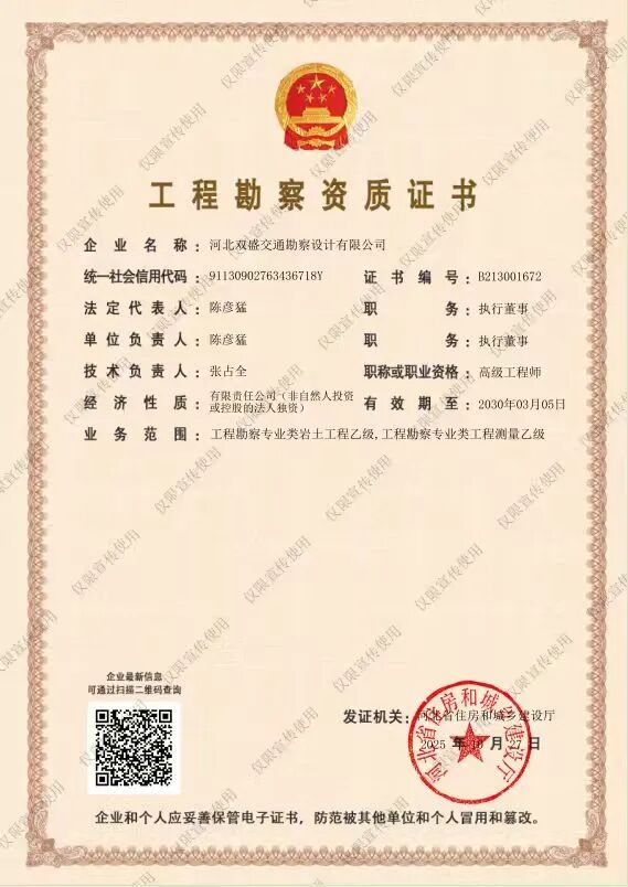 近日,經(jīng)河北省住房和城鄉(xiāng)建設(shè)廳核準(zhǔn),河北雙盛交通勘察設(shè)計(jì)有限公司(以下簡(jiǎn)稱“雙盛公司”)成功取得“工程勘察專業(yè)類巖土工程乙級(jí)”資質(zhì)。該資質(zhì)的獲批,是公司在專業(yè)資質(zhì)體系建設(shè)中的重要突破,標(biāo)志著雙盛公司在巖土工程領(lǐng)域的專業(yè)能力與服務(wù)水準(zhǔn)獲得權(quán)威認(rèn)可。