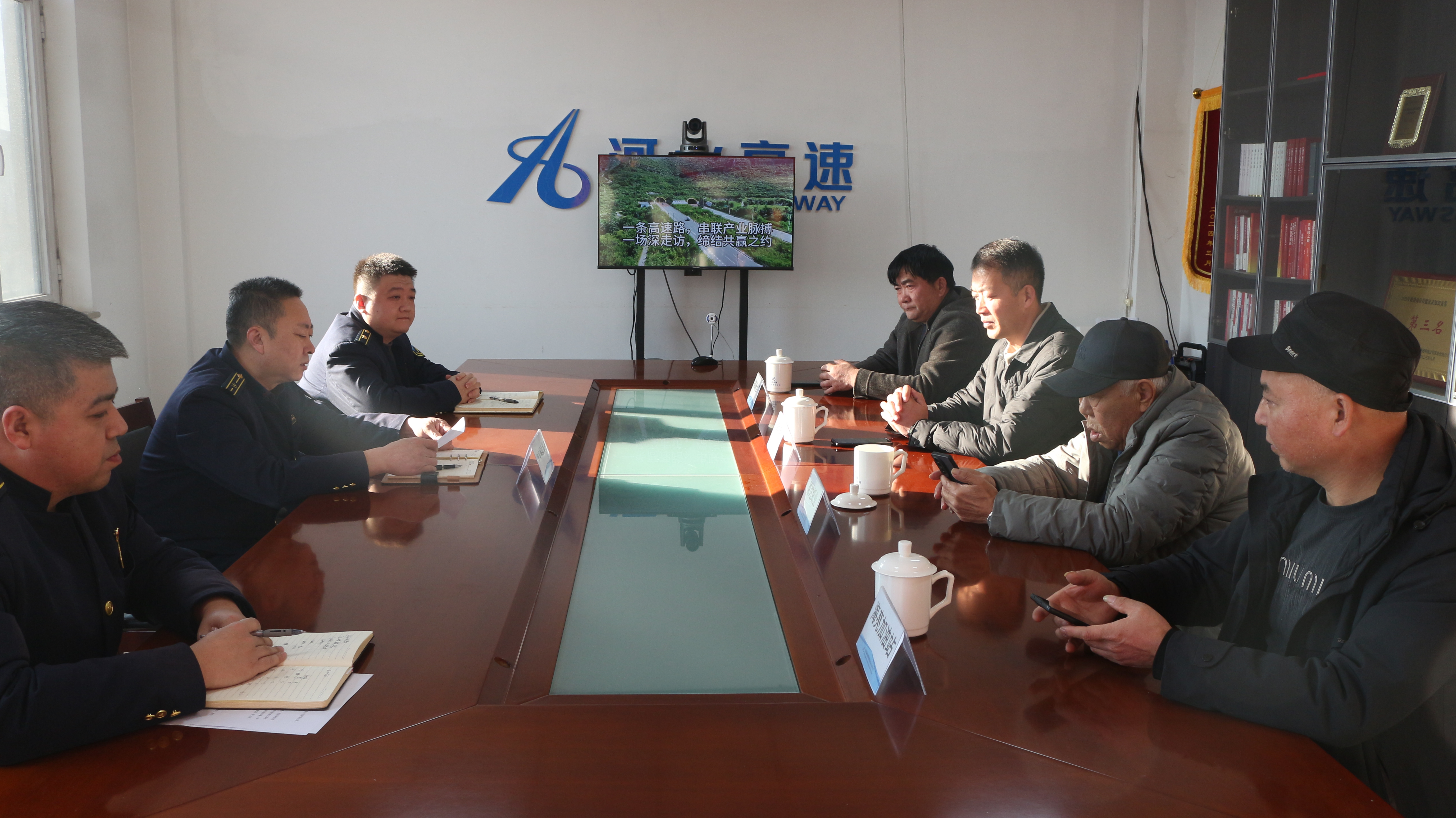 小寒至,冬漸濃,平安城收費(fèi)站內(nèi)卻是暖意融融。為打通商企溝通“最后一公里”,持續(xù)推進(jìn)“同行服務(wù)”走深走實(shí),1月5日上午,平安城收費(fèi)站精心組織商企座談會(huì),誠(chéng)摯邀請(qǐng)慧牧通交易市場(chǎng)、海亮加油站、慧達(dá)紙業(yè)、祥瑞粉條廠四家重點(diǎn)企業(yè)代表走進(jìn)站區(qū),以“面對(duì)面聽訴求、實(shí)打?qū)嵔怆y題、心貼心促發(fā)展”的務(wù)實(shí)姿態(tài),搭建起高效暢通、互信共贏的服務(wù)橋梁。