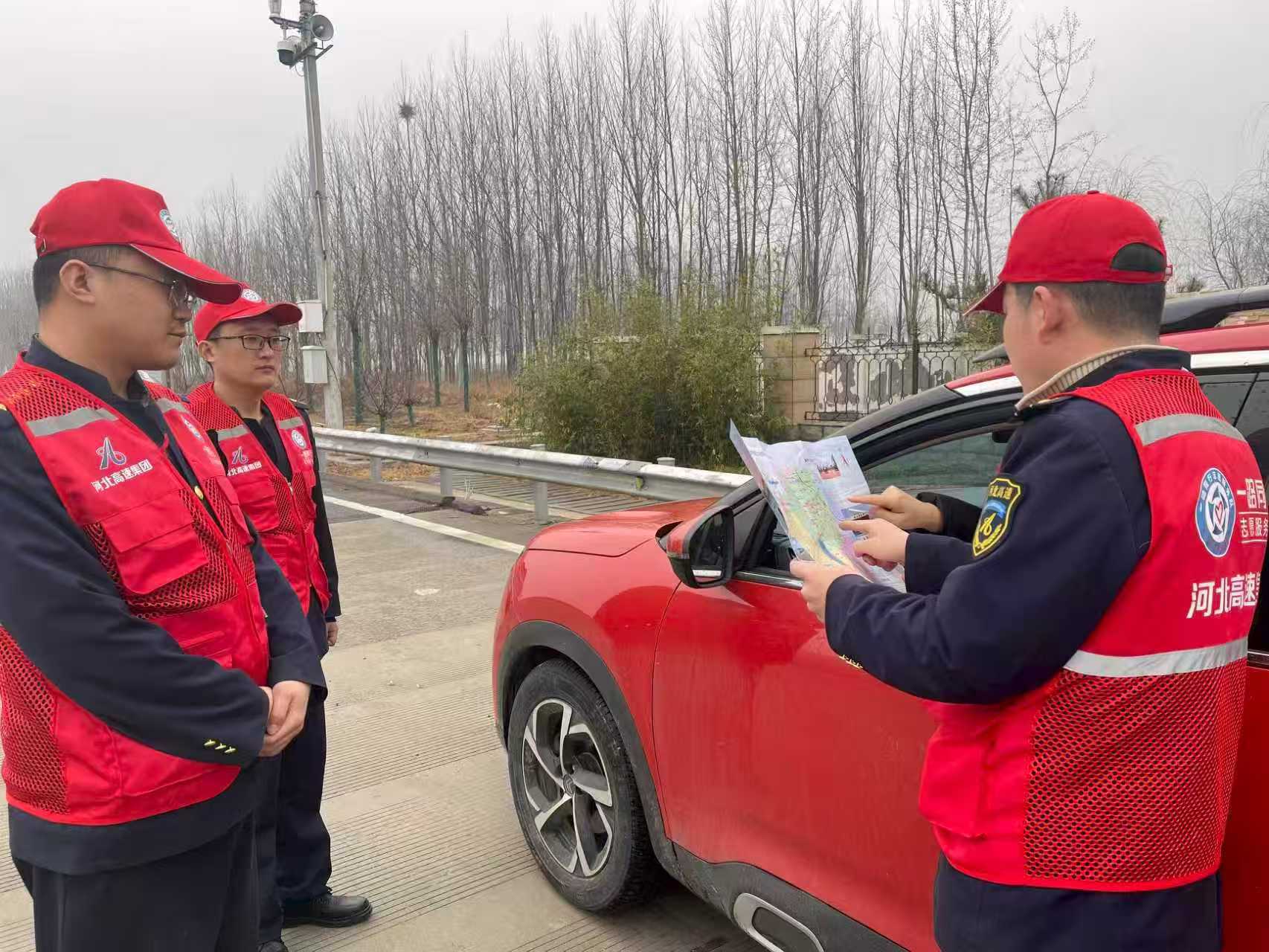 3月8日,一輛小轎車(chē)停靠在衡水西收費(fèi)站出口廣場(chǎng),司機(jī)下車(chē)向崗?fù)ぶ凳厝藛T詢(xún)問(wèn)衡水博物館的位置。收費(fèi)員見(jiàn)狀立即上報(bào)班長(zhǎng)為司機(jī)講解行駛路線(xiàn)。