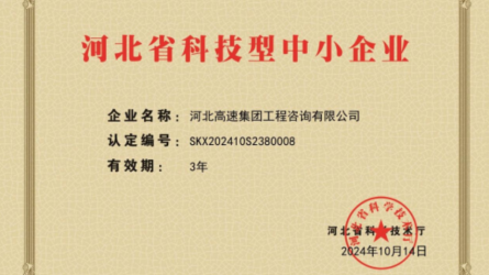 近日,河北高速集團(tuán)工程咨詢有限公司成功通過河北省科學(xué)技術(shù)廳“河北省科技型中小企業(yè)”認(rèn)定。[詳細(xì)]