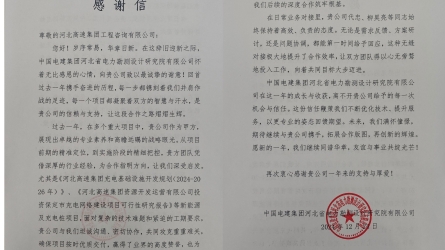 中國電建集團(tuán)河北省電力勘測設(shè)計研究院有限公司特向河北高速集團(tuán)工程咨詢有限公司發(fā)來《感謝信》[詳細(xì)]