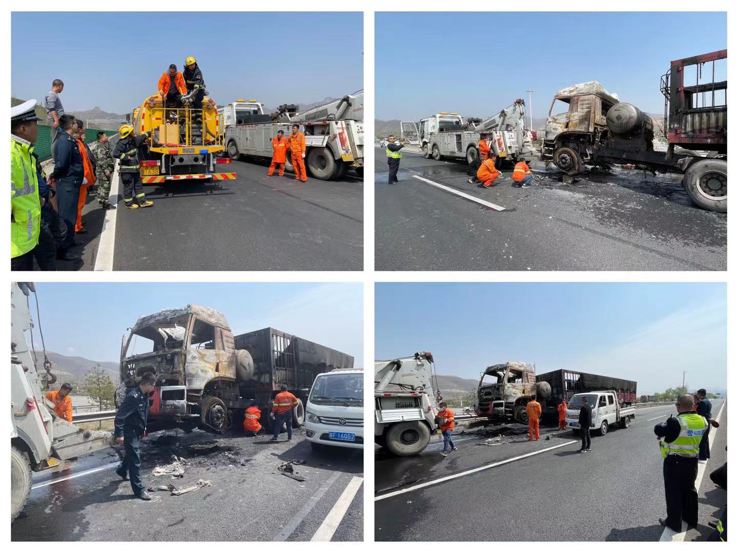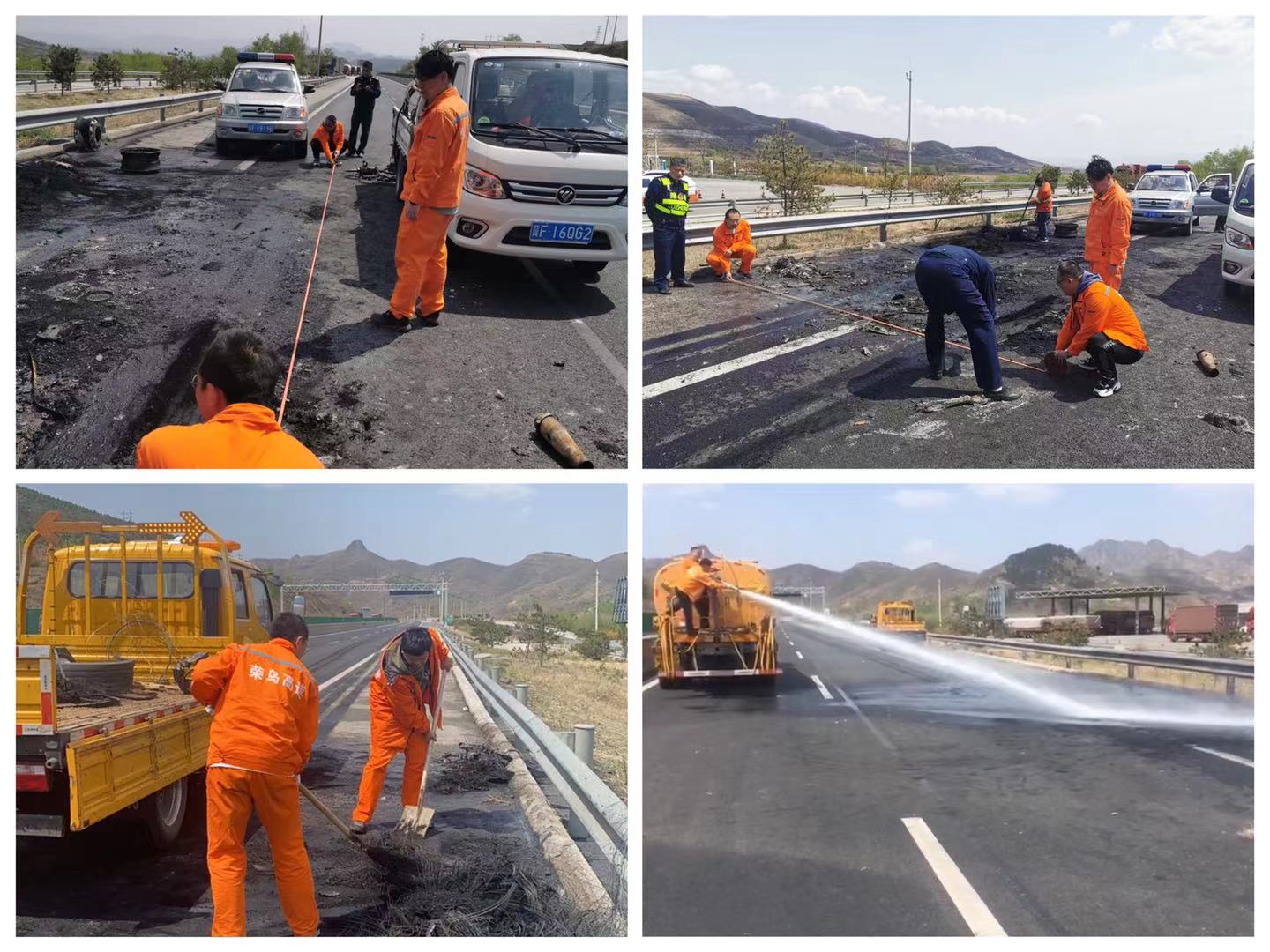 10:45,火情被徹底撲滅,為避免主路壓車和二次事故的發(fā)生,高速交警淶源大隊、高速路政易縣大隊、高速救援、淶源養(yǎng)護(hù)工區(qū)等部門迅速對積水及事故車輛進(jìn)行了清理。12:45,歷時14個小時,事故現(xiàn)場處理完畢,車輛恢復(fù)正常通行。