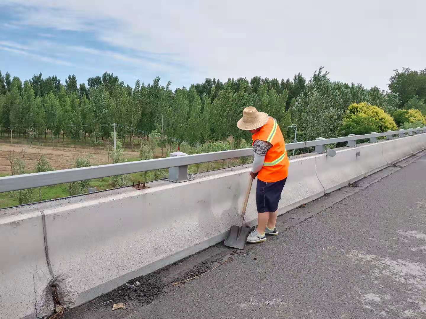 6月24日,香河工區(qū)積極組織養(yǎng)護(hù)工人清理潮白河大橋排水孔,徹底清除沉積泥沙及雜物,保證橫向排水孔通暢,使路面積水迅速排出。工區(qū)通過(guò)開(kāi)展排水孔清理工作,消除了雨天道路積水問(wèn)題,為汛期做好準(zhǔn)備,保障了高速公路降雨天氣的行車(chē)安全。