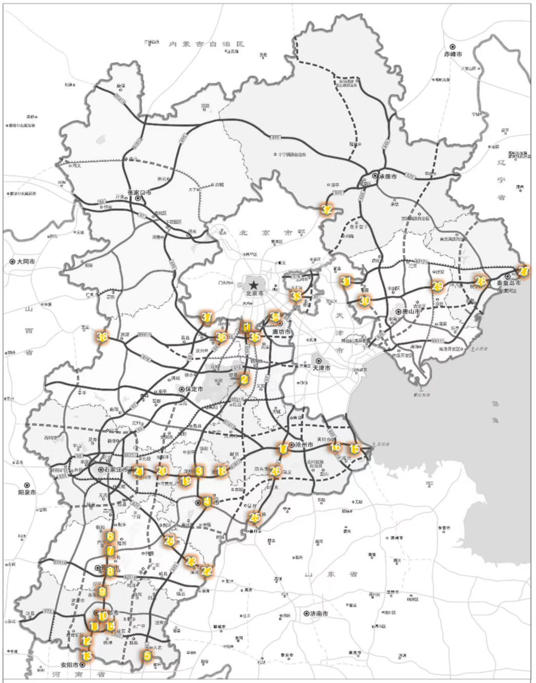 本次招商引資的高速物流節(jié)點項目主要分布在大廣高速、青銀高速、石安高速、石黃高速、京滬高速、京哈高速以及環(huán)京等優(yōu)質(zhì)地段上。具體情況見后。