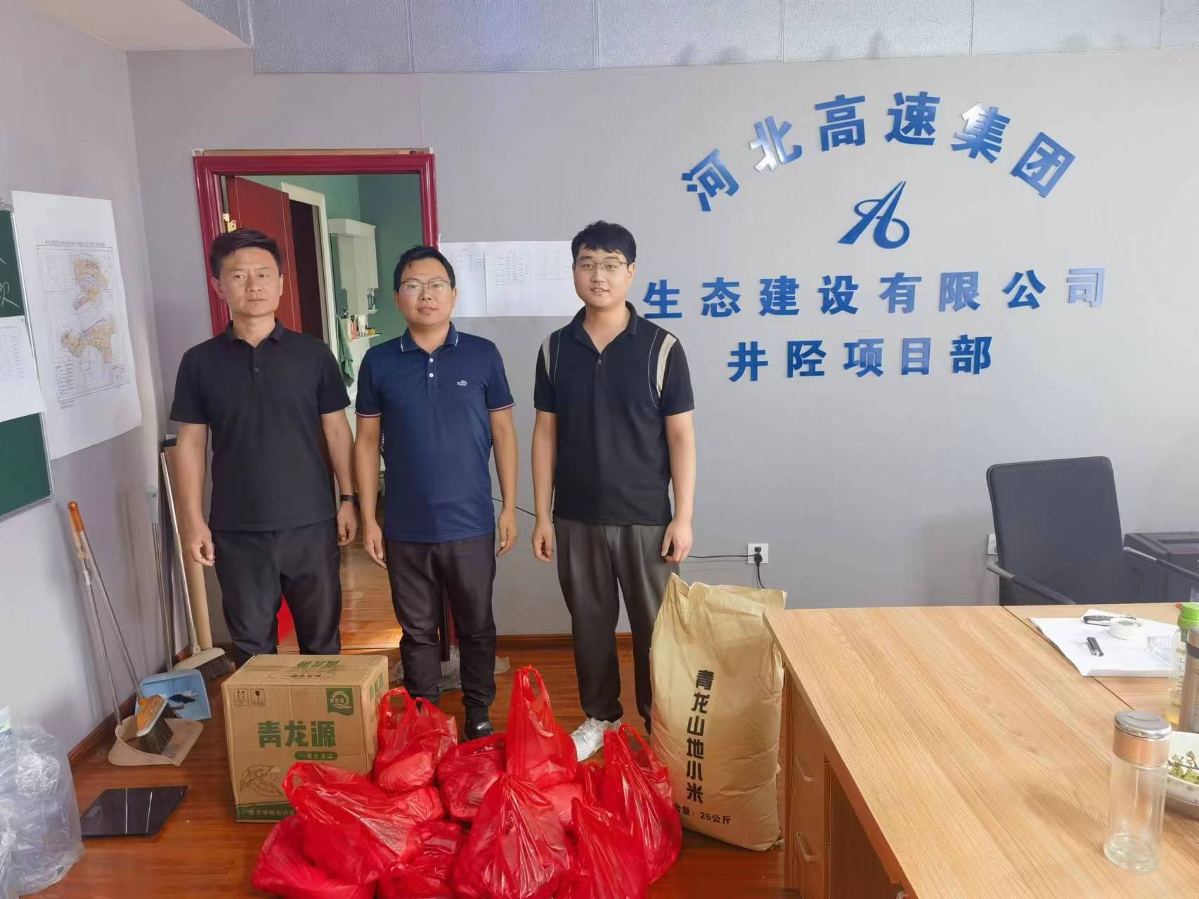 在中秋佳節(jié)和國慶節(jié)來臨之際,生態(tài)建設(shè)公司黨支部對項目一線職工牽掛在心,支部書記焦銀禾和支部委員吳波來到井陘土地整治項目經(jīng)理部,為一線員工送來了南瓜、小米、豬肉等慰問品,把濃濃深情傳遞給公司一線的每一位職工。