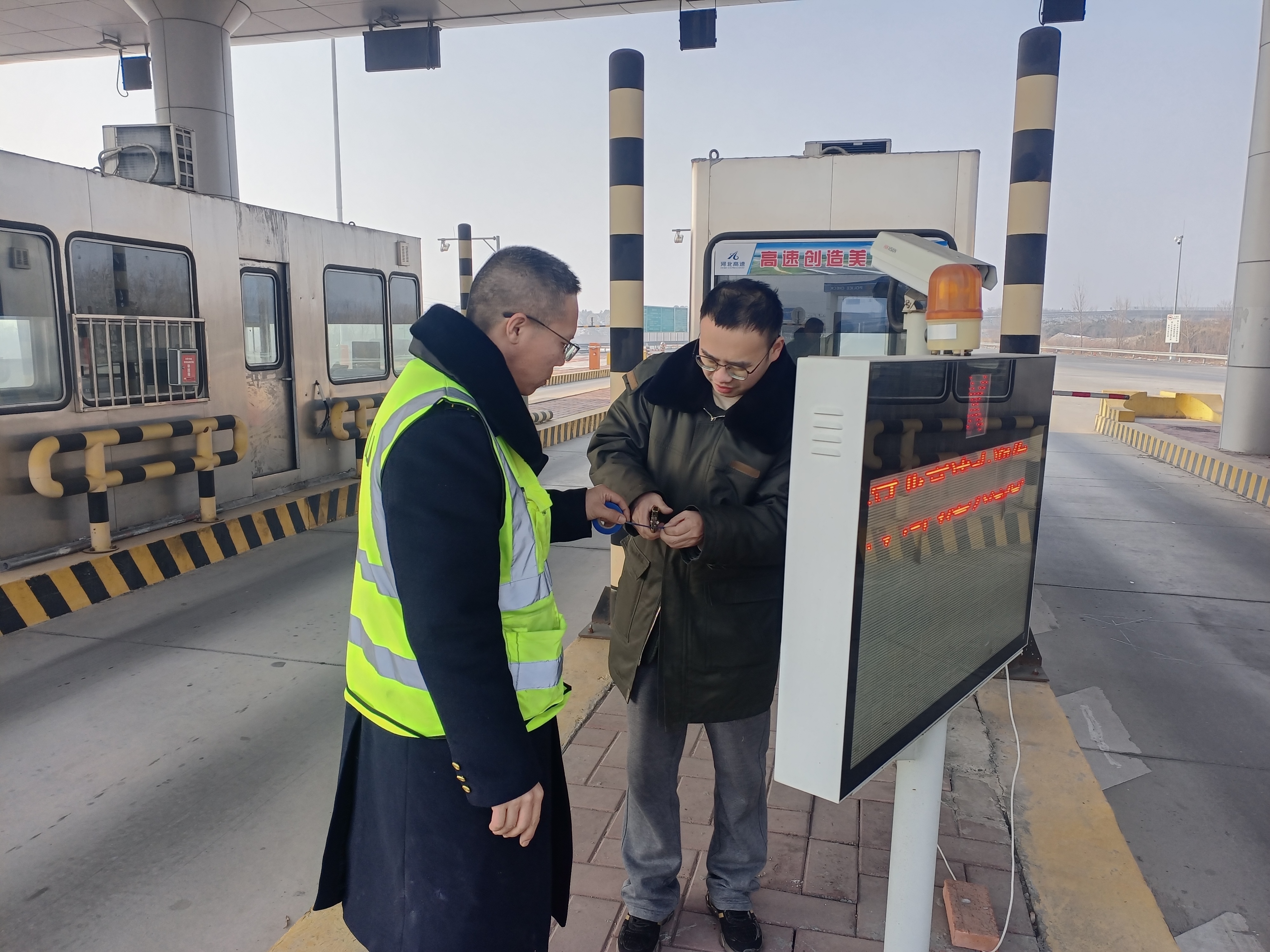 元旦假期來臨,大霧卻不約而至,為確保節(jié)日期間道路安全暢通,給司乘提供更加高效、便捷的出行條件,蔣福山收費(fèi)站按照“絕不放過一個(gè)漏洞,絕不丟掉一個(gè)盲點(diǎn),絕不留下一個(gè)隱患”的原則,在日常巡檢的基礎(chǔ)上加大巡查力度,確保將各類隱患排查、處理到位。元旦當(dāng)天,站長帶隊(duì)巡檢期間發(fā)現(xiàn)入口2道ETC屏顯發(fā)生故障,當(dāng)即進(jìn)行現(xiàn)場軟件、硬件排查,發(fā)現(xiàn)是信號傳輸發(fā)生了故障,如果按常規(guī)程序需將所有地下線路逐一檢修排查,耗時(shí)耗力。為保證節(jié)日期間所有車道正常開啟,站長現(xiàn)場決定暫時(shí)用鋪設(shè)明線的方式與設(shè)備進(jìn)行連接,避免因長時(shí)間維修設(shè)備造成站口通行不暢。站長組織站自主維修小隊(duì)與機(jī)電員經(jīng)過半小時(shí)的明線鋪設(shè)與設(shè)備調(diào)試,使故障屏顯設(shè)備快速恢復(fù)正常使用。