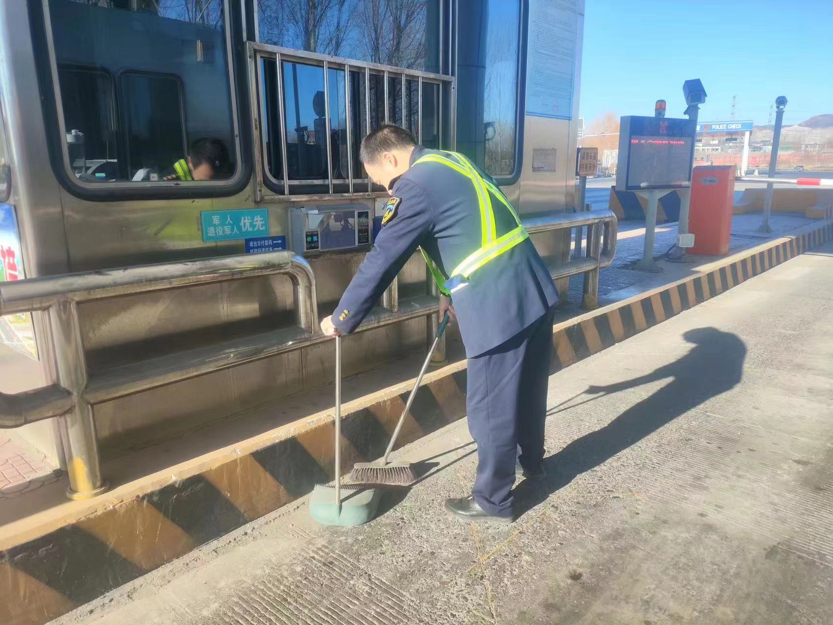 春節(jié)臨近,為了營(yíng)造更好的節(jié)日氛圍和通車環(huán)境,1月27日,三河?xùn)|收費(fèi)站組織在崗職工對(duì)收費(fèi)站口和外廣場(chǎng)進(jìn)行清掃。