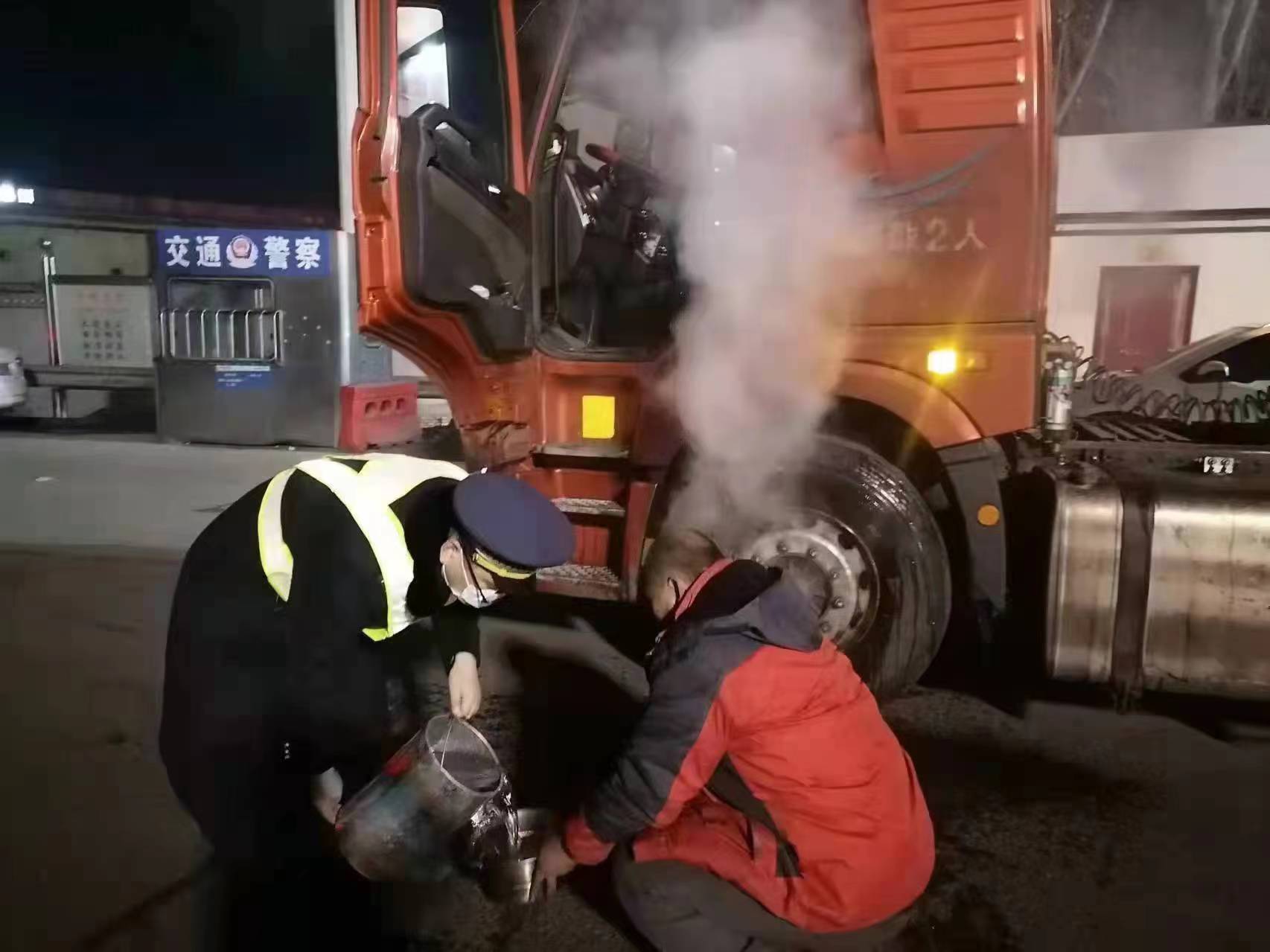 “班長(zhǎng),快看,有輛車好像有情況,車輪在冒煙!”沿著疏導(dǎo)員指的方向,班長(zhǎng)閆志科看見(jiàn)一輛冒著煙的六軸貨車向103車道極速駛來(lái)。事情發(fā)生在2月15日晚上11點(diǎn)20分左右,憑借班長(zhǎng)的經(jīng)驗(yàn),閆志科立即用對(duì)講通知崗?fù)な召M(fèi)員韓凱,讓韓凱攔停車輛并告知司機(jī)這一狀況,同時(shí)閆志科帶領(lǐng)疏導(dǎo)人員火速趕到將車輛疏導(dǎo)至廣場(chǎng)安全地帶,并在車身周圍放置安全錐,待司機(jī)熄火下車后,閆志科馬上對(duì)冒煙部位進(jìn)行檢查,原來(lái)是左前輪胎的剎車片過(guò)熱引起的,了解原因后,閆志科連續(xù)提了幾桶水來(lái)為車輛降溫并把水箱加滿。事后司機(jī)向閆志科表達(dá)了感謝,閆志科說(shuō):“守護(hù)司乘的安全是我們的職責(zé)所在!新春佳節(jié)之際,您在路上行駛還是要安全第一!”司機(jī)再一次道謝后駛離收費(fèi)站。