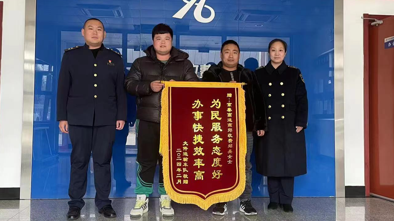 引導(dǎo)車司機(jī)向燕郊收費(fèi)站豎起大拇指,稱贊道:“你們業(yè)務(wù)能力真強(qiáng),為我們省去了很多等待時(shí)間。”并送來了錦旗表示感謝?!盀槊穹?wù)態(tài)度好 辦事快捷效率高”這樣的夸獎(jiǎng),是每一位河北高速人共同堅(jiān)守的企業(yè)愿景。