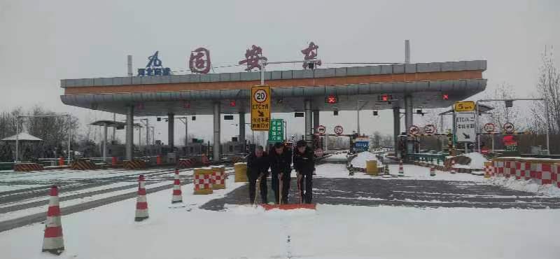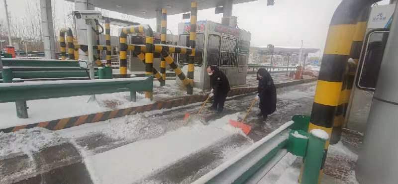 雪情就是命令,保暢就是責任!為給司乘人員提供良好的行車環(huán)境,保障過往車輛的順利通過,雪停后,固安東收費站迅速啟動《除雪保暢應(yīng)急預(yù)案》,在站工作人員在站領(lǐng)導的帶領(lǐng)下,迅速投入到這場除雪保暢的戰(zhàn)役中。大家不顧寒冷濕滑,拿起鐵鍬、鏟雪板、掃把等掃雪工具及時對車道、廣場的積雪進行清理。在此期間,沒有一名同志喊累,沒有一人掉隊,經(jīng)過大家的共同努力,保障了固安東收費站車道的通暢和行車的安全。