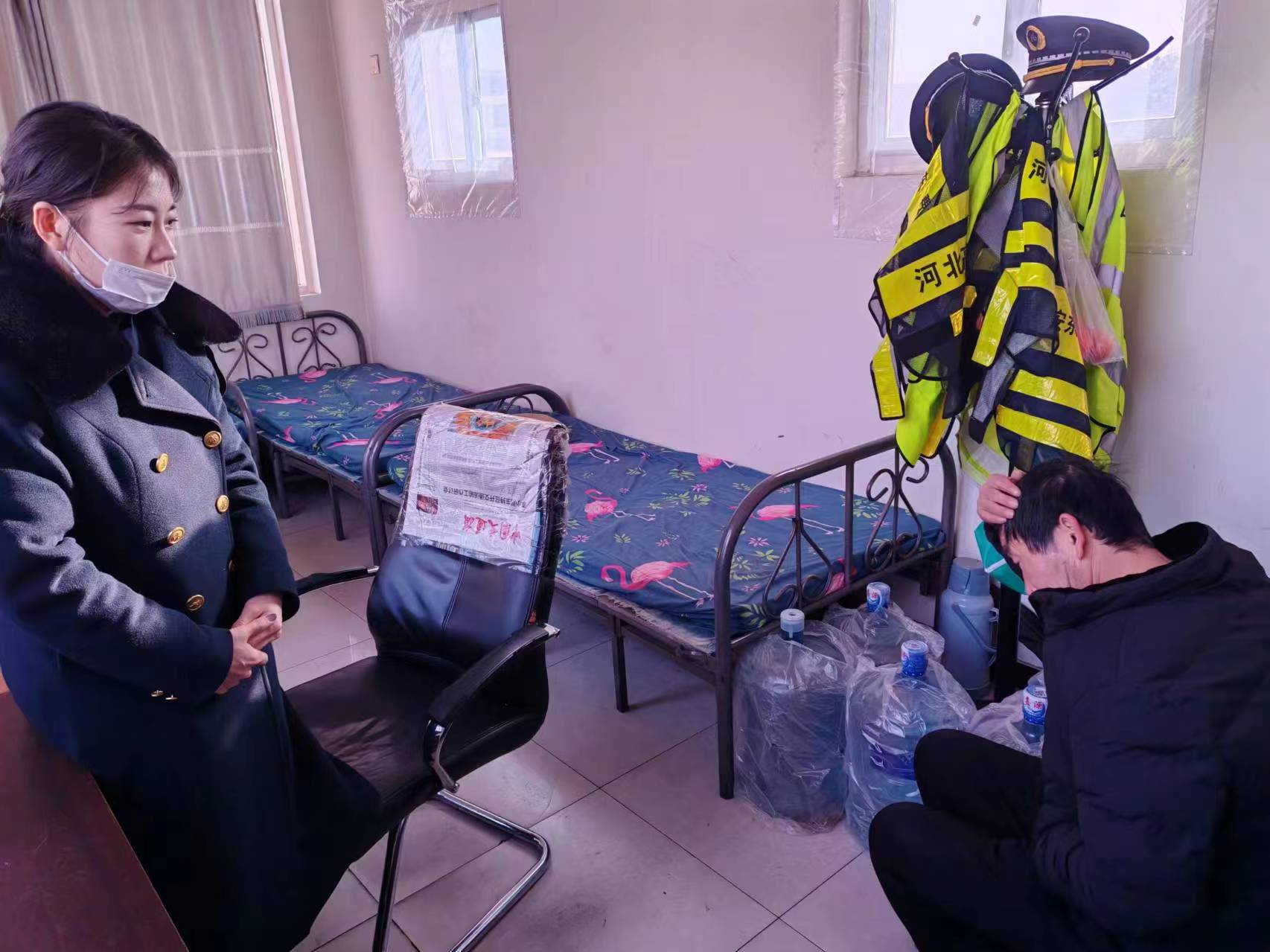 由于天氣寒冷,邸士偉把該男子請(qǐng)到了便民服務(wù)亭休息,疏導(dǎo)員王旭則一直安慰該男子:“放心師傅,您的問題我們盡量給您解決,讓您早點(diǎn)坐上回家的車?!臂∈總?bào)請(qǐng)值班站長(zhǎng)同意后,用值班電話聯(lián)系了固安汽車站,詢問了到達(dá)邢臺(tái)的汽車班次,并幫助該男子聯(lián)系好大巴車和確定上車的位置。16點(diǎn)40分左右該男子成功的坐上了回家的大巴車,臨走之前一再對(duì)兩人表示感謝。