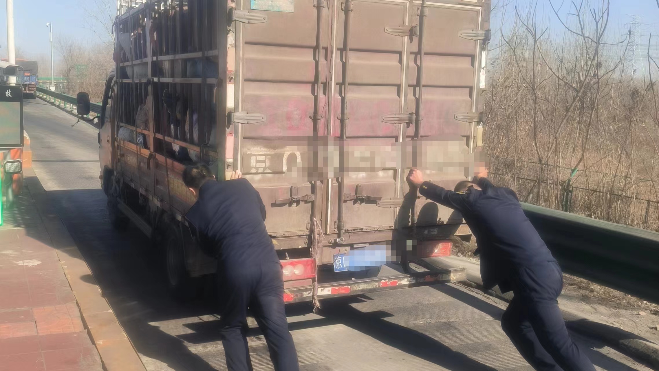 3月3日14時40分,在發(fā)卡004車道發(fā)卡作業(yè)的張亞寧為一輛藍牌貨車發(fā)卡后,車輛突然熄火,無法啟動。張亞寧立即用對講機呼叫班長劉星和備崗員王靜瑤前來推車。