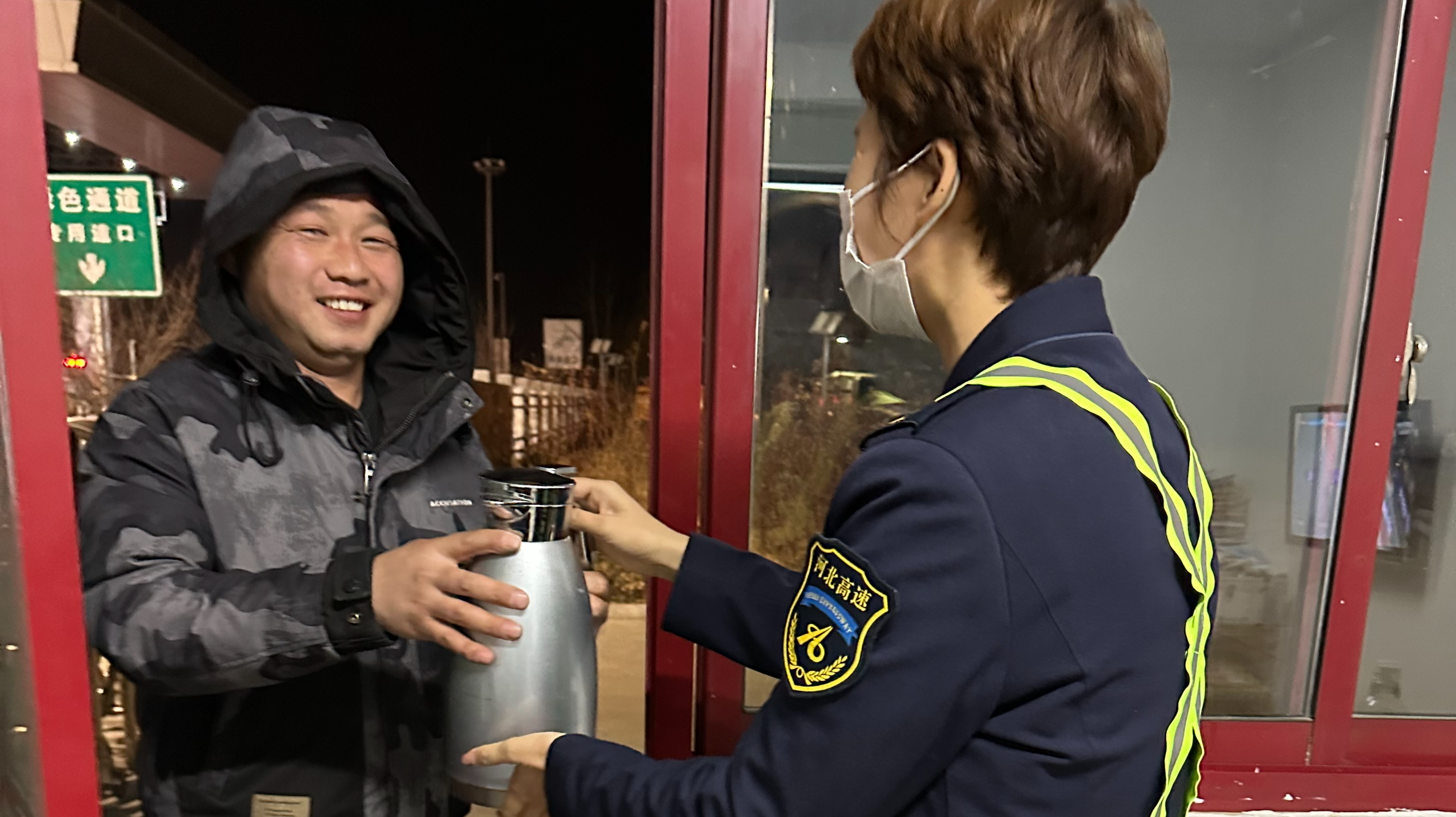 春節(jié)過(guò)后,白天雖陽(yáng)光明媚,但夜間溫度卻仍不那么友好。3月5號(hào)晚,一輛小型客車在駛出三河?xùn)|站時(shí),對(duì)收費(fèi)員問(wèn)道:“咱們收費(fèi)站有接熱水的地兒?jiǎn)??可不可以接一壺??/p>