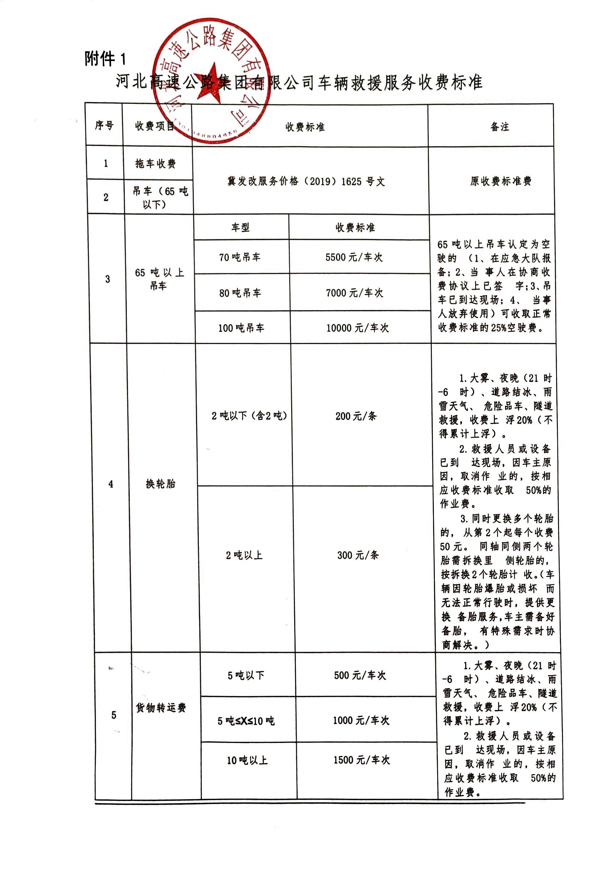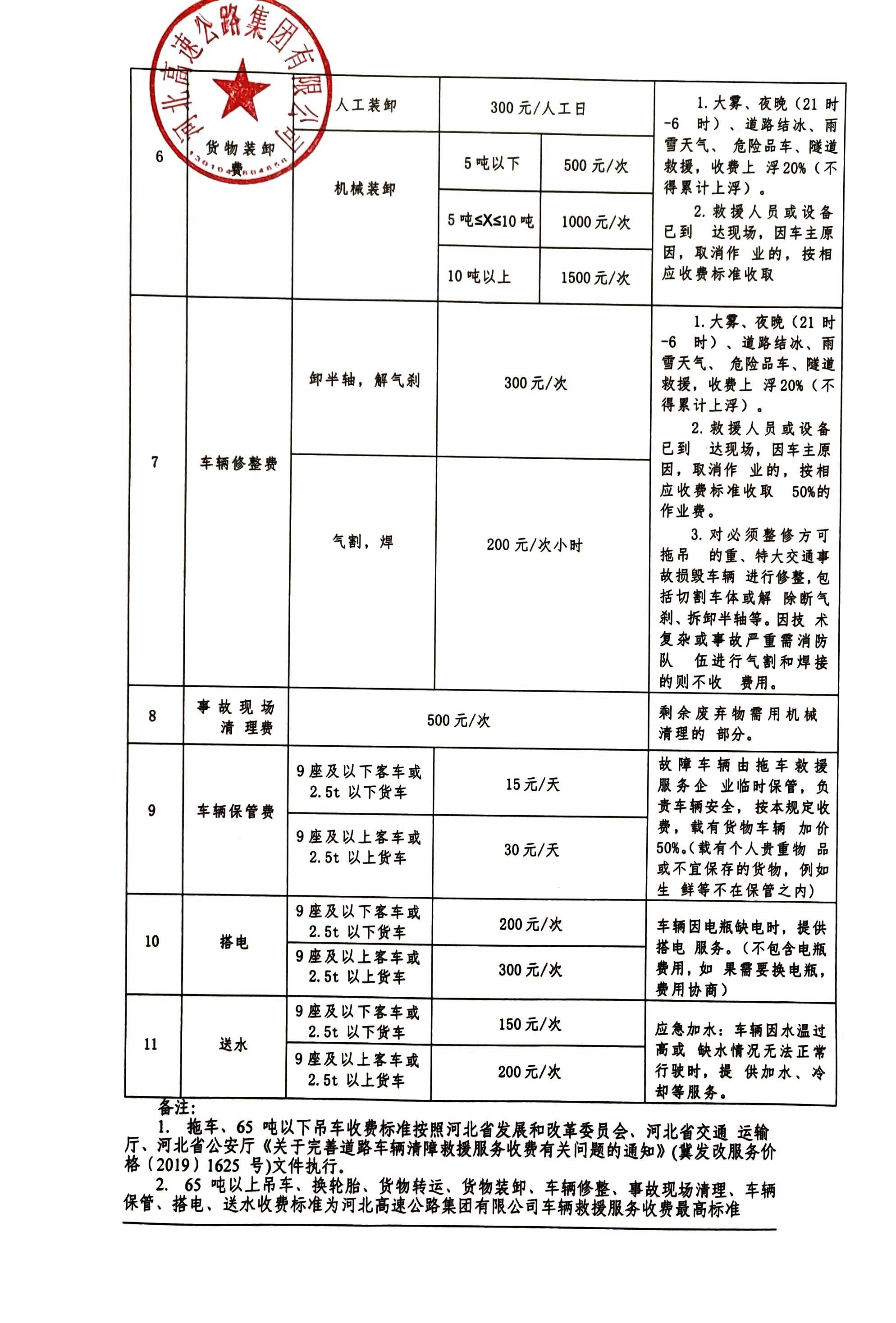 河北高速公路集團(tuán)有限公司車流救援收費(fèi)服務(wù)標(biāo)準(zhǔn)