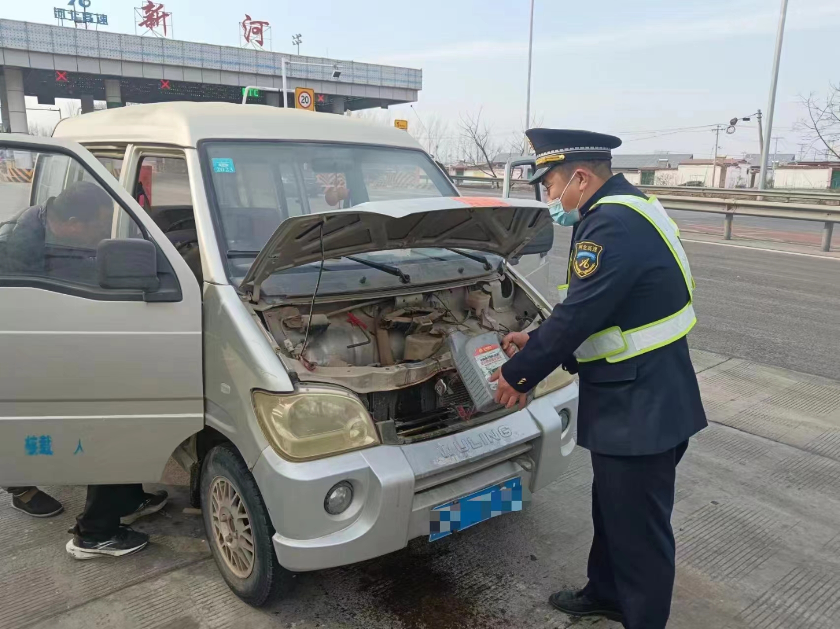 2024年3月13日16時左右,新河收費站收費一班與收費四班交班之際。收費員徐程顥發(fā)現(xiàn)一輛銀色面包溜車至104車道,司機啟動不了車輛,車輛冒出白煙。徐程顥立馬用對講呼叫班長楊宏義,楊宏義與疏導員張樂急忙趕到事發(fā)現(xiàn)場。楊宏義立即安排張樂疏導車輛,對司機說:“師傅,你別著急,我?guī)湍惆衍囃频较碌缽V場安全位置”。班長楊宏義幫司機檢查車輛,由于車輛溫度過高,水箱開鍋了,冒出白煙。經(jīng)過20分鐘車輛冷卻,楊宏義幫司機把水箱加滿水,車輛再次啟動。司機對楊宏義說:“真是太感謝你們了,要不然我自己可不知道怎么辦了”。楊宏義說:“保證司乘的一路安全暢通,是我們應該做的,你路上注意安全。”隨后回到了自己的工作崗位上。