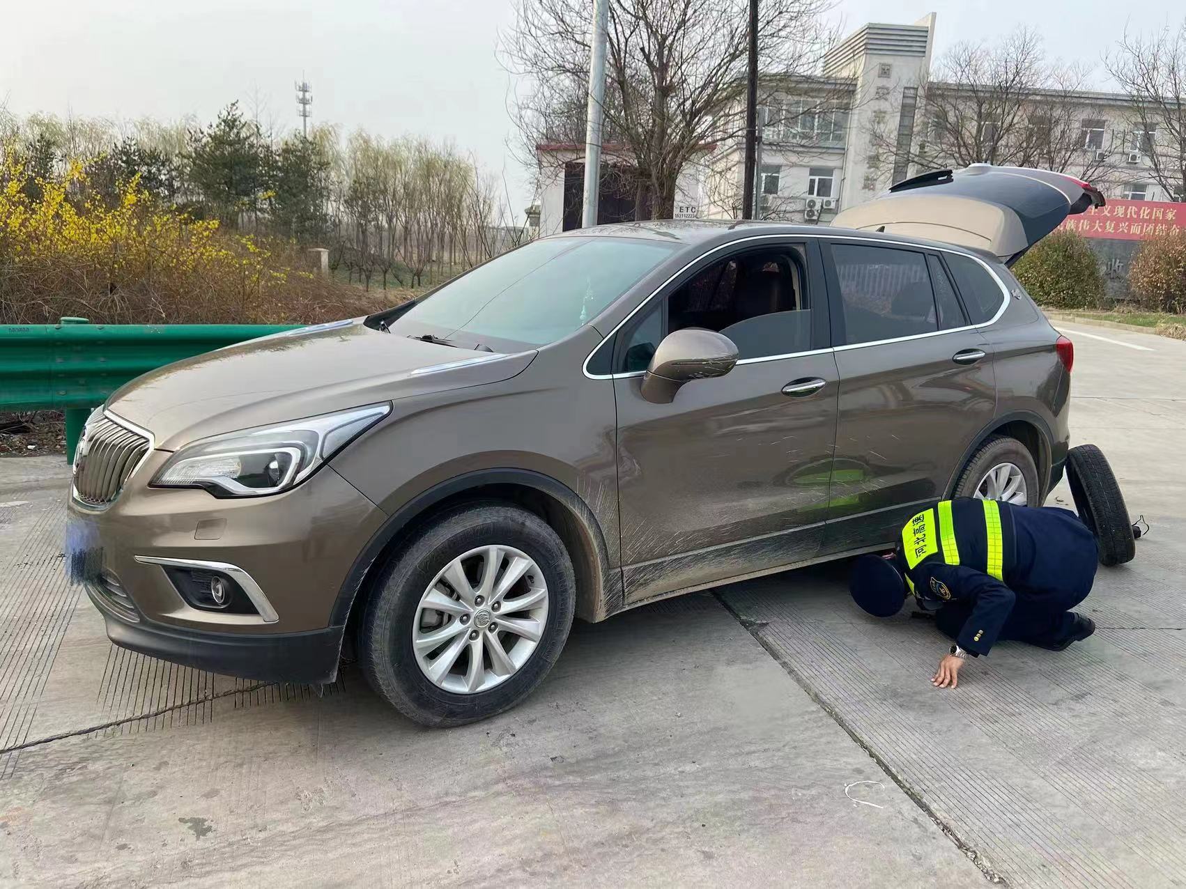 3月26日15時(shí),一輛河北牌照的小型客車駛?cè)胧召M(fèi)105車道,司機(jī)繳費(fèi)時(shí)對(duì)收費(fèi)員宋曉蒲說(shuō):同志,我的車胎漏氣了,您能幫我找人修一修嗎?宋曉蒲隨即走出崗?fù)げ榭窜囕v情況,發(fā)現(xiàn)是左后輪癟了下去,叮囑司機(jī)將車子停放到外廣場(chǎng)安全地帶,同時(shí)呼叫班長(zhǎng)段偉周前去支援。