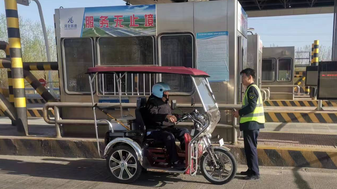 4月12日上午8時(shí)左右,三河南收費(fèi)站發(fā)卡員發(fā)現(xiàn)一位騎著電動(dòng)三輪車的老人誤入了003車道,情況緊急,立即通過(guò)對(duì)講知了當(dāng)班班長(zhǎng)。班長(zhǎng)接到通知后,第一時(shí)間趕到現(xiàn)場(chǎng),疏導(dǎo)員也立即行動(dòng),攔截了后方駛來(lái)的車輛,確保了老人的安全。