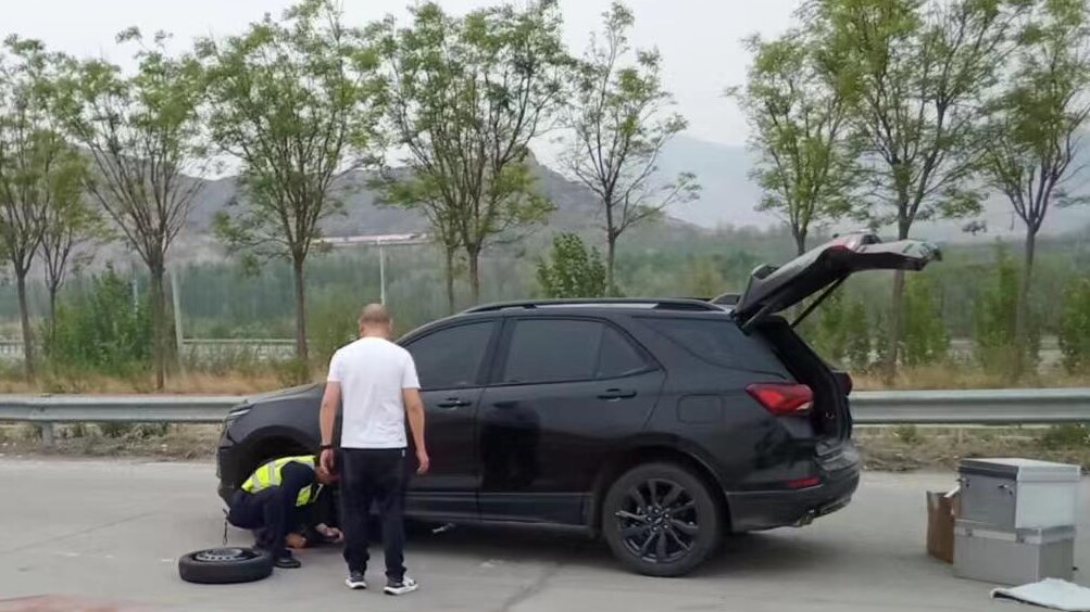 2024年4月26日下午5點(diǎn)30分,一輛黑色客車在蔣福山收費(fèi)站收費(fèi)廣場入口處緩緩?fù)??,?dāng)班班長發(fā)現(xiàn)后立即上前詢問情況,司機(jī)稱自己正準(zhǔn)備上高速突然聽見胎壓監(jiān)測預(yù)警,下車檢查后輪胎上扎了一個(gè)大釘子。收費(fèi)班長當(dāng)即拿來修車工具,在做好安全防護(hù)措施后同疏導(dǎo)員一起幫助司機(jī)換上了備用輪胎。因?yàn)樘幹眉皶r(shí),整個(gè)過程未造成交通擁堵,司機(jī)也在完成備胎更換后安全駛離收費(fèi)站。