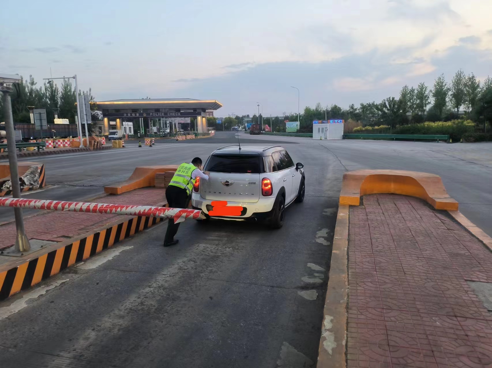 5月7日19時15分,一輛車牌為冀A的小型客車打開雙閃燈停在固安東收費(fèi)站下道收費(fèi)廣場右側(cè),車上下來一名女子圍著車正在焦急地打著電話,在收費(fèi)105車道收費(fèi)作業(yè)的金萬磊見此情景,意識到司機(jī)可能需要幫助,立即報告班長劉星前去了解情況。
