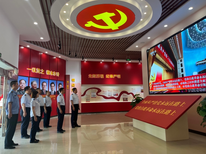 隆堯縣廉政警示教育基地設(shè)有“明紀(jì)廳”“警示廳”“醒悟廳”“正氣廳”四個(gè)展廳,在講解員的引導(dǎo)下,大家認(rèn)真觀看廉政教育圖片、影像等,一個(gè)個(gè)發(fā)人深省的案例、一份份剖析深刻的懺悔書、一幕幕現(xiàn)身說法的場景,讓大家深受觸動(dòng)、深受警示。參觀結(jié)束后,全體黨員在黨支部書記時(shí)云飛同志的帶領(lǐng)下,在展廳宣誓處重溫入黨誓詞,引導(dǎo)黨員干部職工永葆黨員清正廉潔本色。