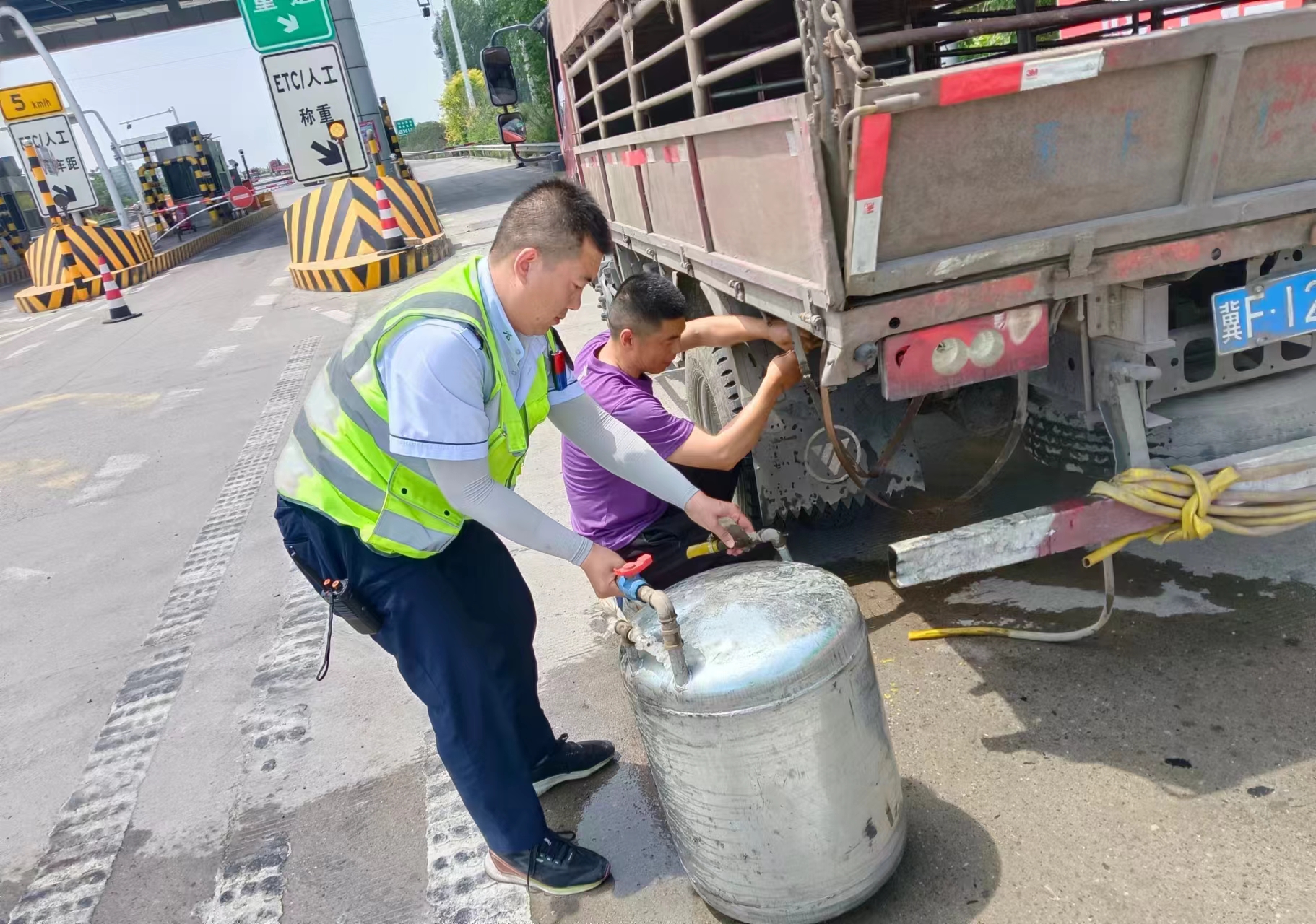 5月30日,中午12點30分左右,一輛藍牌貨車行駛至淶水北收費站外廣場時,突然停車,當班疏導員見狀,第一時間趕到現(xiàn)場,見司機滿臉焦急,通過詢問,得知其車輛水箱故障,車輛無法正常啟動。