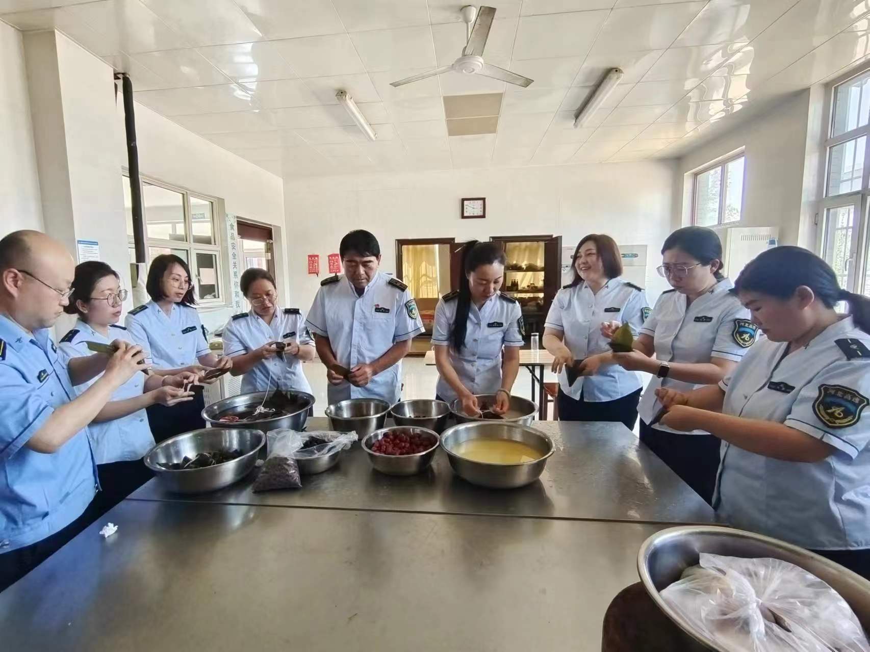 為了包制香甜可口的粽子,食堂師傅提前泡好了糯米、黃米和粽葉,精心準(zhǔn)備了大棗、紅豆、花生、葡萄干等多種食材。大家在站領(lǐng)導(dǎo)帶領(lǐng)下,“高手”示范教學(xué),“學(xué)員”躍躍欲試,分工協(xié)作、各展所長,卷粽葉、加米、放餡、剪線、扎線。包制中,大家一邊探討包粽子的竅門,一邊聊著各自家鄉(xiāng)端午節(jié)的習(xí)俗,歡聲笑語間,活動的氛圍達(dá)到高潮。轉(zhuǎn)眼間,一個個碧綠飽滿、神態(tài)各異的粽子映入眼簾,大家看著自己的勞動成果,臉上洋溢著滿意的笑容,心中無比自豪。