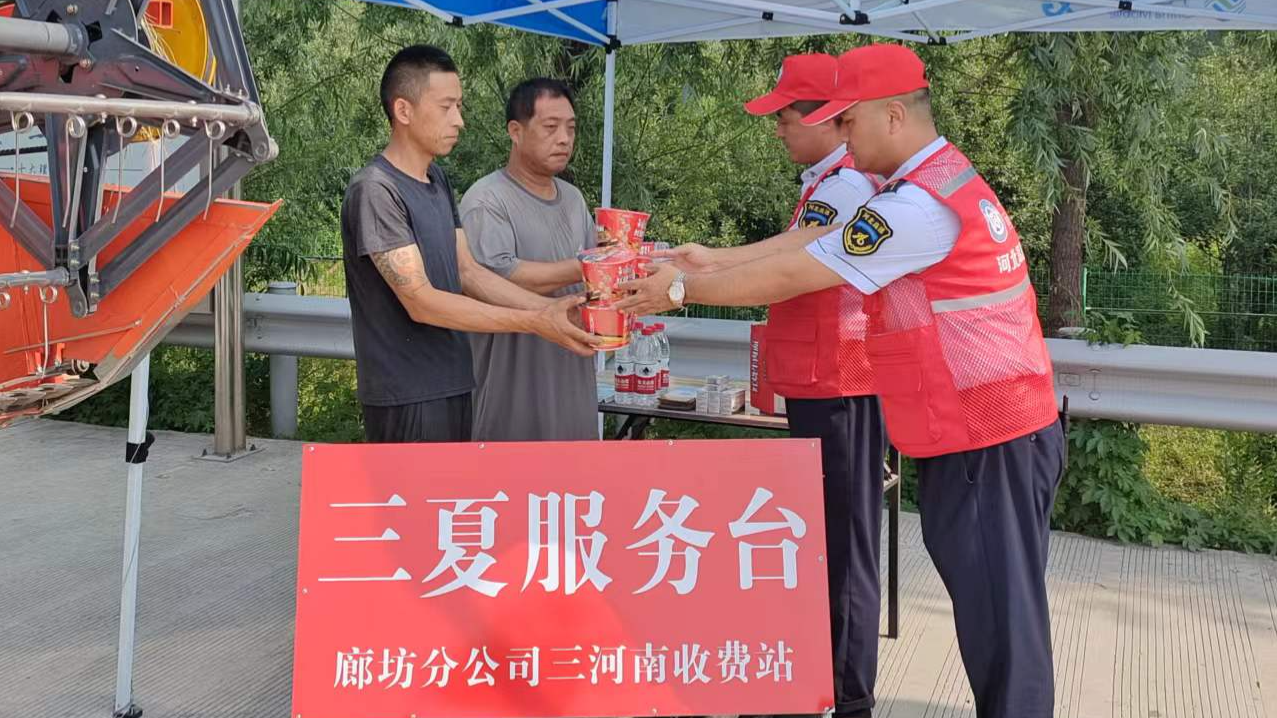 三河南收費站始終堅持“服務(wù)無止境”的服務(wù)理念,在確?;菝裾呗鋵嵚涞氐耐瑫r,持續(xù)關(guān)注農(nóng)機(jī)手們的實際需求,積極提供溫馨、周到的服務(wù),助力農(nóng)機(jī)跨區(qū)作業(yè)順利進(jìn)行。