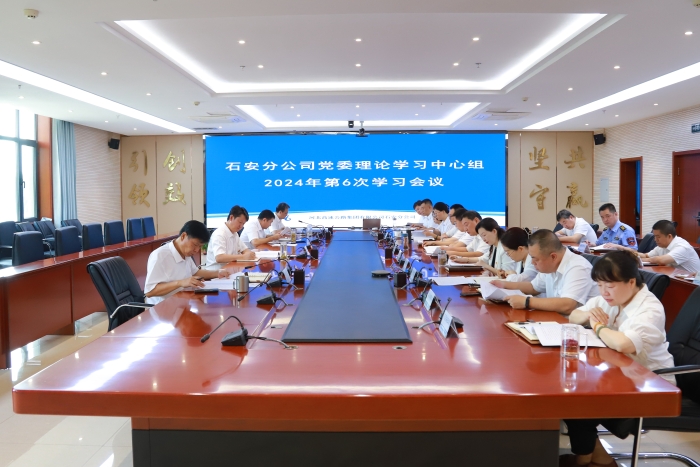 7月31日,石安分公司黨委召開2024年第6次理論學習中心組學習會議,分公司黨委書記陳園主持并講話,領導班子成員任忠杰、柴飛、陳東坡出席。