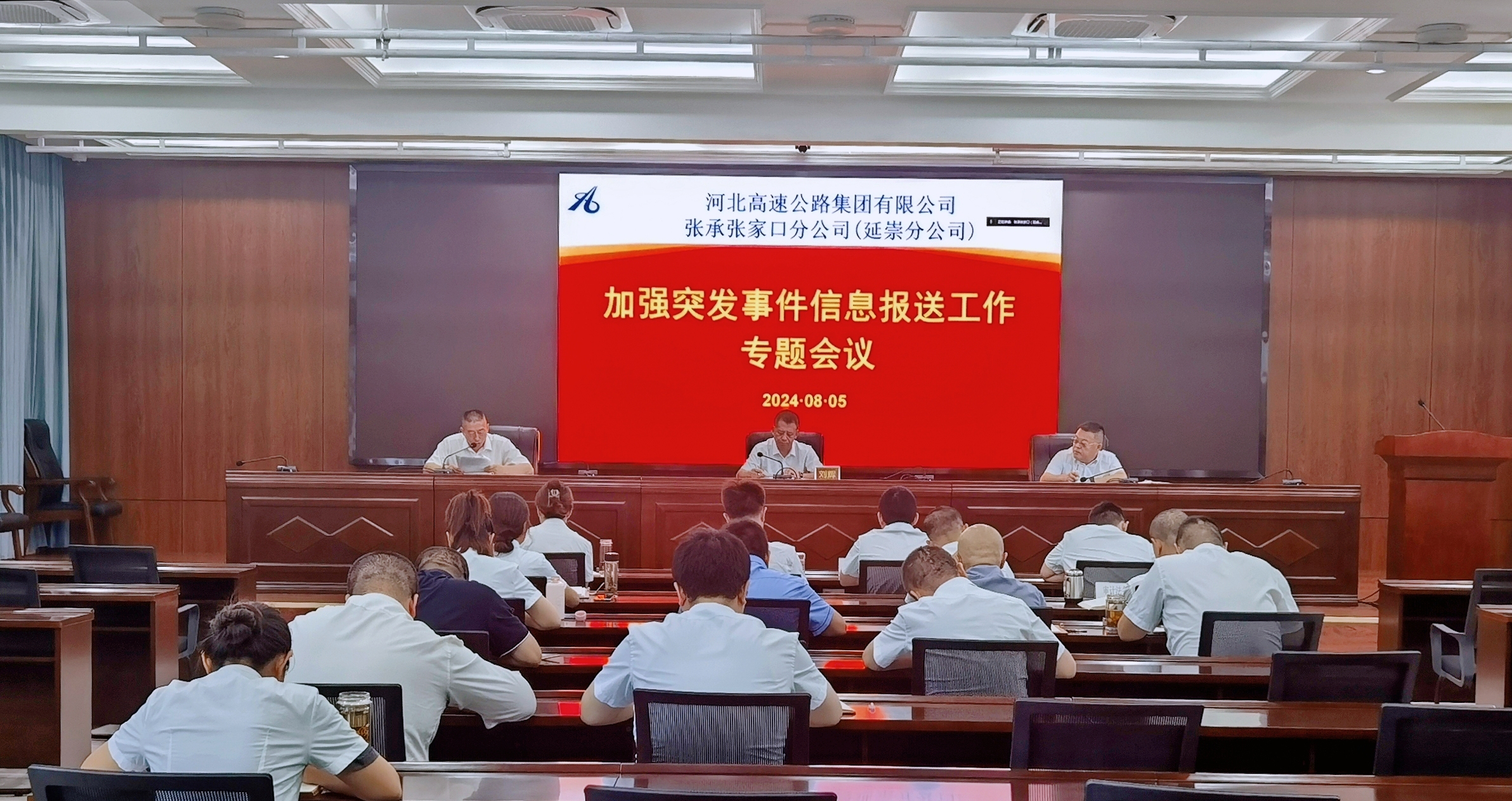 8月5日,張承張家口分公司(延崇分公司)組織召開加強(qiáng)突發(fā)事件信息報送工作專題會議,對突發(fā)事件信息報送工作的重要性和規(guī)范性進(jìn)行再強(qiáng)調(diào),再部署,確保高效應(yīng)對和處置突發(fā)事件。分公司主管安全工作副總經(jīng)理劉輝主持會議,各部室主要負(fù)責(zé)人及負(fù)責(zé)人、直屬單位主要負(fù)責(zé)人及負(fù)責(zé)人現(xiàn)場參會,各基層單位主要負(fù)責(zé)人、負(fù)責(zé)人及相關(guān)人員視頻參會。