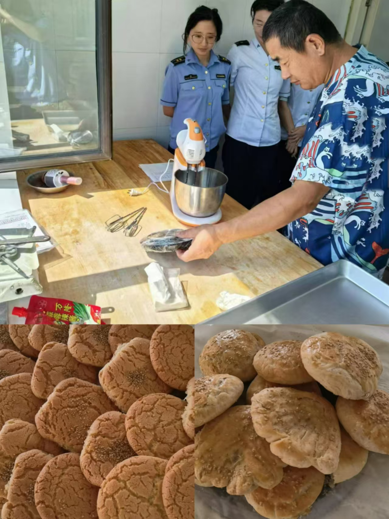 食堂內(nèi)彌漫著誘人的香氣,參與者們熱情高漲,充滿期待地開啟了烘焙學(xué)習(xí)之旅。烘焙程師傅耐心地為大家講解著烤面包、桃酥、蛋糕的每一個步驟,從原材料的選擇到精確的配比,從揉面的技巧到發(fā)酵的關(guān)鍵環(huán)節(jié),再到烘烤適宜溫度與時間把控,事無巨細(xì)。
