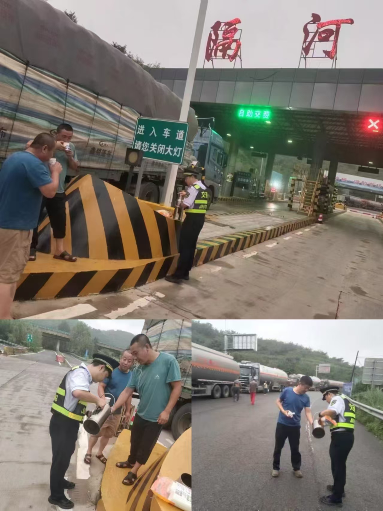 于是,暖心的一幕出現(xiàn)了。班長帶領(lǐng)工作人員為司機們打來了熱水,讓他們能在這濕冷的天氣中感受到一絲溫暖。同時,收費站還積極做好延伸服務(wù),耐心解答司機們的疑問,安撫他們的情緒。