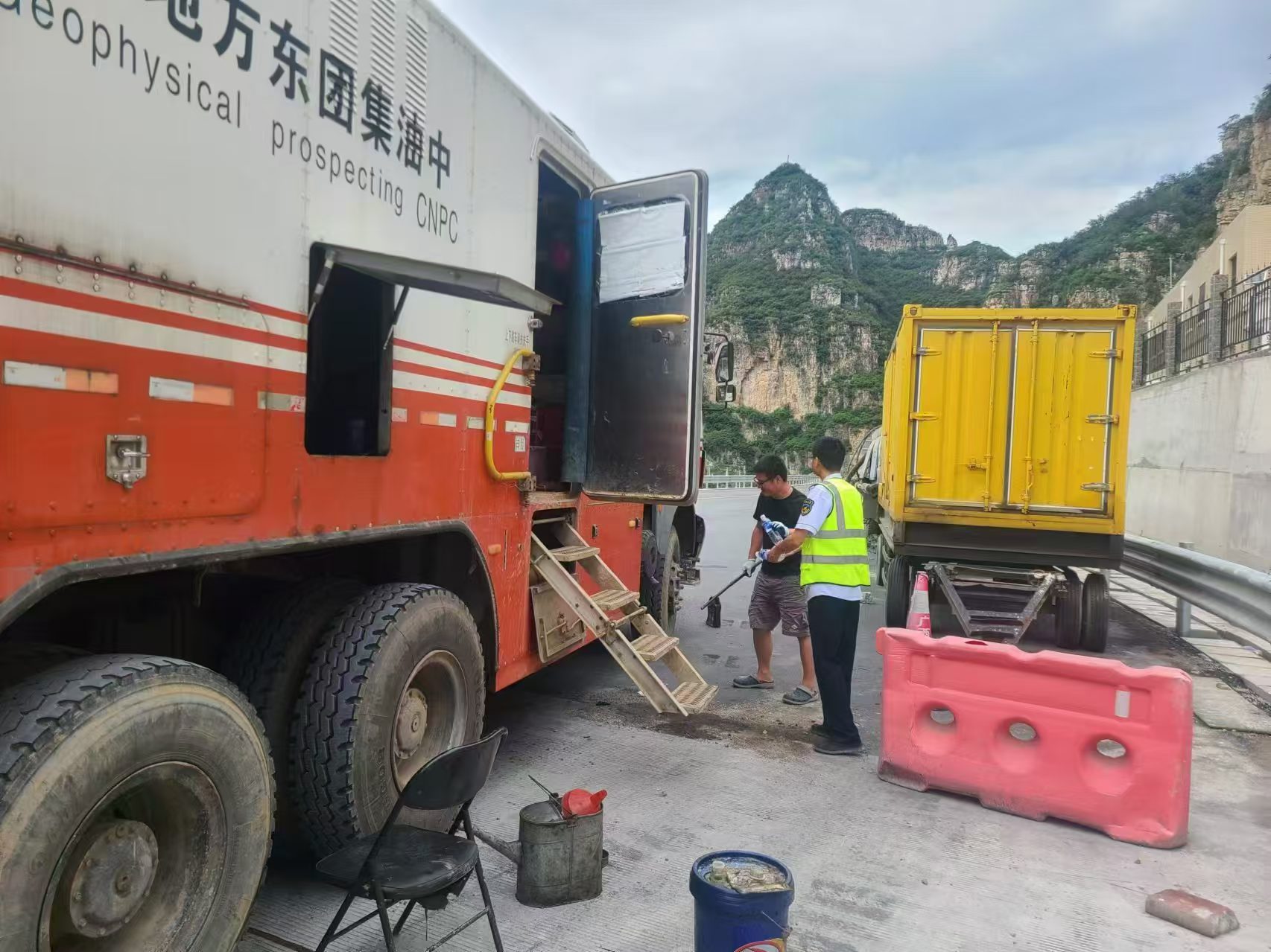 等待修理工到來(lái)的過(guò)程中,交流中收費(fèi)員得知司機(jī)因急于趕路,未及時(shí)補(bǔ)充水分??紤]到天氣酷熱,收費(fèi)員特地拿來(lái)幾瓶水,遞給了司機(jī),讓他解渴。貨車司機(jī)接過(guò)水,感激之情溢于言表。