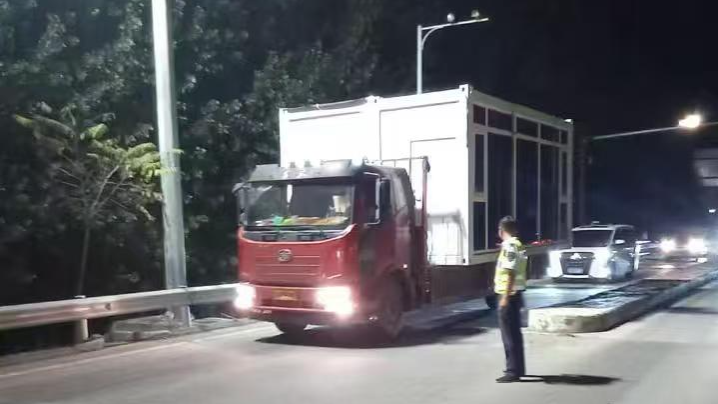 9月18日19點30分,一輛外觀明顯超限的二型貨車緩緩駛?cè)胂愫游魇召M站入口稱重車道,班長立即上前將其攔下?!拔疫@車又沒超重,為什么不讓我上高速!”司機情緒激動地說?!澳能囕v所拉貨物超寬了,屬于超限車,存在嚴重安全隱患,為了您和其它車輛的通行安全,您的車輛不能行駛高速公路?!彼緳C情緒仍然很激動,班長耐心地安撫道:“今天是中秋節(jié),首先祝您節(jié)日快樂,中秋節(jié)是闔家團圓的日子,出行車輛較多,車流量較大,為了您和大家的安全,您還是按規(guī)定,用專用車輛運輸貨物吧?!彼緳C在班長的耐心勸導(dǎo)下,最終選擇掉頭回去,在班長的指引下,安全駛離了收費站。