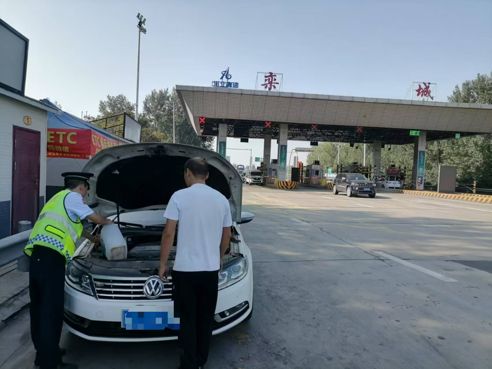 9月16日下午4:45分,正值車輛高峰期時(shí),一輛小轎車駛?cè)胧召M(fèi)車道,車還未停穩(wěn)就傳來(lái)異響。收費(fèi)員發(fā)現(xiàn)情況后立馬提醒司機(jī),司機(jī)稱車輛報(bào)警有一會(huì)兒了自己很少開(kāi)車對(duì)車況不熟悉,也不清楚是何原因報(bào)警。收費(fèi)員勸司機(jī)繳完通行費(fèi)后靠邊進(jìn)行排查,安全無(wú)小事。同時(shí)喊來(lái)有多年駕駛經(jīng)驗(yàn)的班長(zhǎng)幫忙進(jìn)行查看。隨即班長(zhǎng)趕到現(xiàn)場(chǎng)發(fā)現(xiàn)是車輛缺少防凍液導(dǎo)致報(bào)警。此時(shí)發(fā)動(dòng)機(jī)已經(jīng)處于高溫狀態(tài),班長(zhǎng)趕緊提來(lái)一桶水進(jìn)行降溫處理,隨后又幫司機(jī)聯(lián)系了最近的汽車維修點(diǎn)。