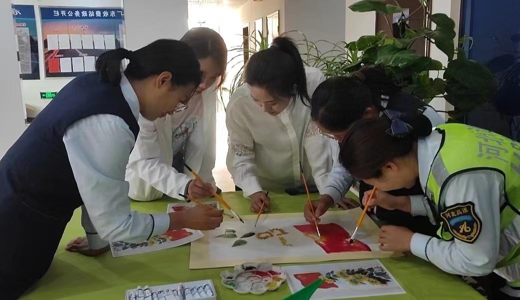 為慶祝新中國(guó)成立 75 周年,廊坊分公司大廠東收費(fèi)站聯(lián)合大廠保通保暢應(yīng)急大隊(duì)組織女職工們開展“同畫一幅畫”活動(dòng),一群滿懷激情與夢(mèng)想的女職工,以手中畫筆為媒、心靈為墨,共同繪制了一幅充滿祝福和美好寓意的畫作《祖國(guó)欣欣向榮》,向偉大的祖國(guó)獻(xiàn)上最誠(chéng)摯的生日祝福。