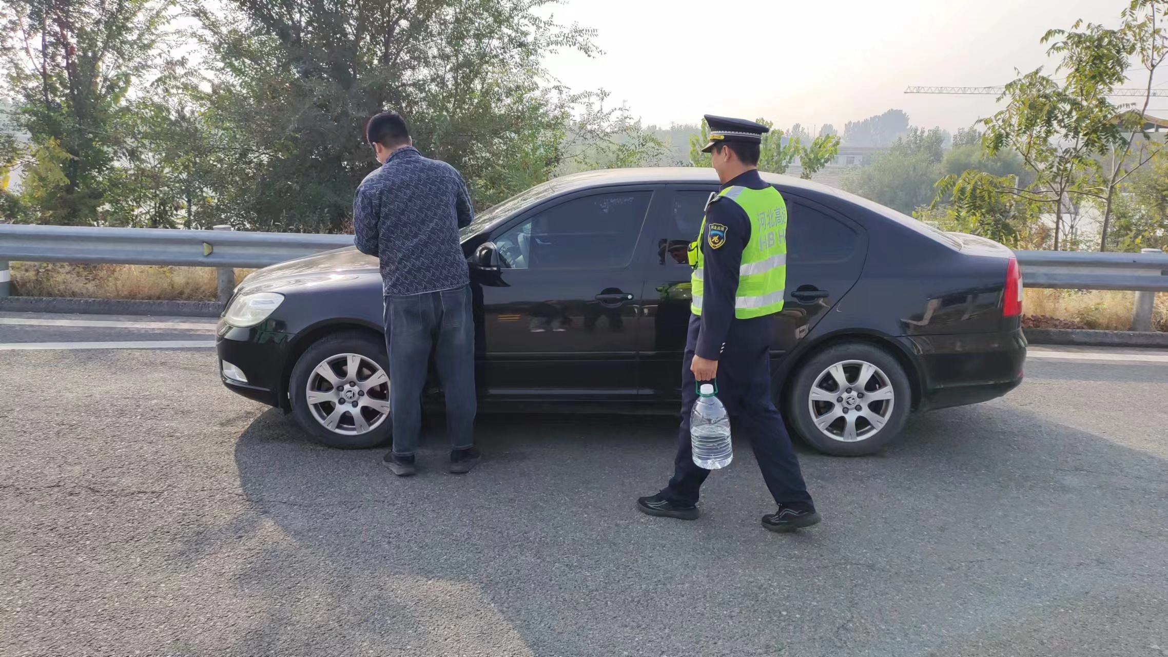 10 月 13日,在蔣福山收費(fèi)站的出口廣場上,一輛小客車緩緩?fù)O?。司機(jī)下車后東張西望,似乎在尋找著什么。當(dāng)班班長敏銳地察覺到司機(jī)可能需要幫助,立刻迎上前去詢問情況。司機(jī)無奈地表示,一路高速行駛下來,前擋風(fēng)玻璃上布滿了小飛蟲的尸體,玻璃水又被用光,嚴(yán)重影響行車視線,想借點(diǎn)水清洗一下。班長毫不猶豫地打來了清水,與司機(jī)一同仔細(xì)清理擋風(fēng)玻璃。隨后,班長又打來飲用純凈水,代替玻璃水加入車中,并貼心地提醒司機(jī)回去后要把水放干凈,以防冬天天冷凍住。司機(jī)對(duì)班長的熱心幫助感激不已,連連道謝。