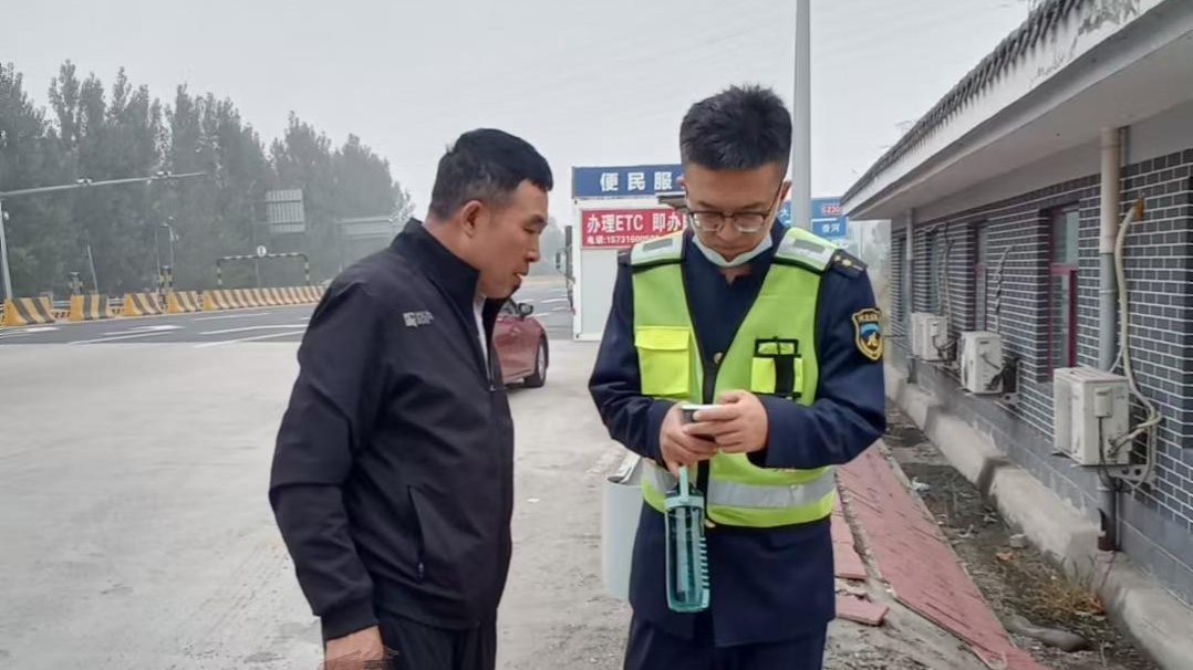 10月14日清晨大霧彌漫,由于天氣原因,首都環(huán)線高速實(shí)行臨時(shí)交通管制。一位司乘朋友焦急地來到香河西收費(fèi)站大門口觀望,準(zhǔn)備上崗的收費(fèi)人員發(fā)現(xiàn)該情況后,立即上前詢問。
