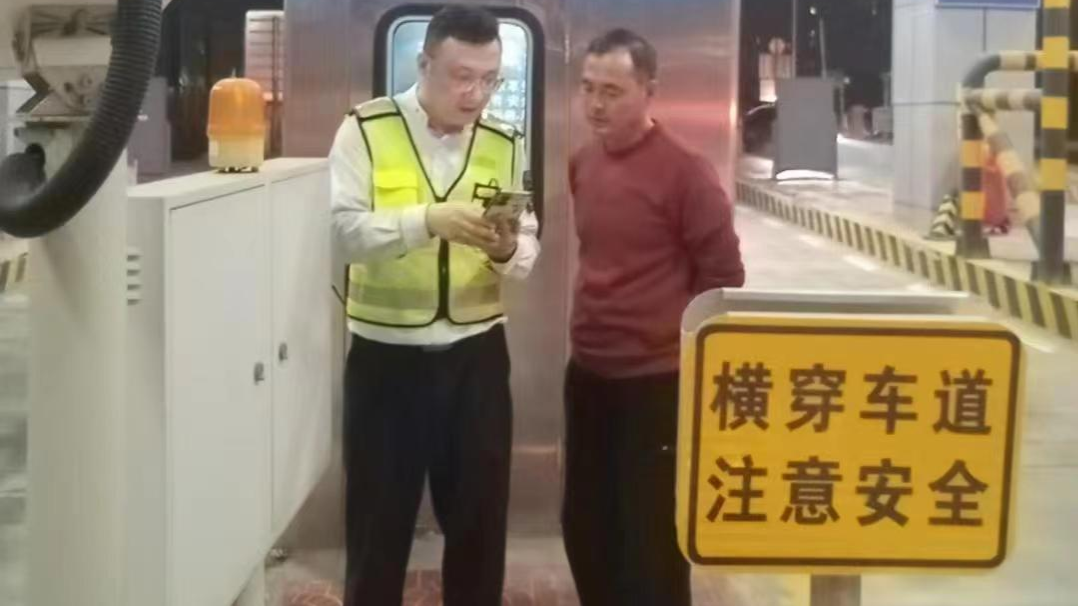 10月15日20時(shí)25分,一輛藍(lán)牌貨車在燕郊西收費(fèi)站繳費(fèi)后于外廣場??坎⑾蚬ぷ魅藛T求助,當(dāng)班班長隨即上前詢問情況。