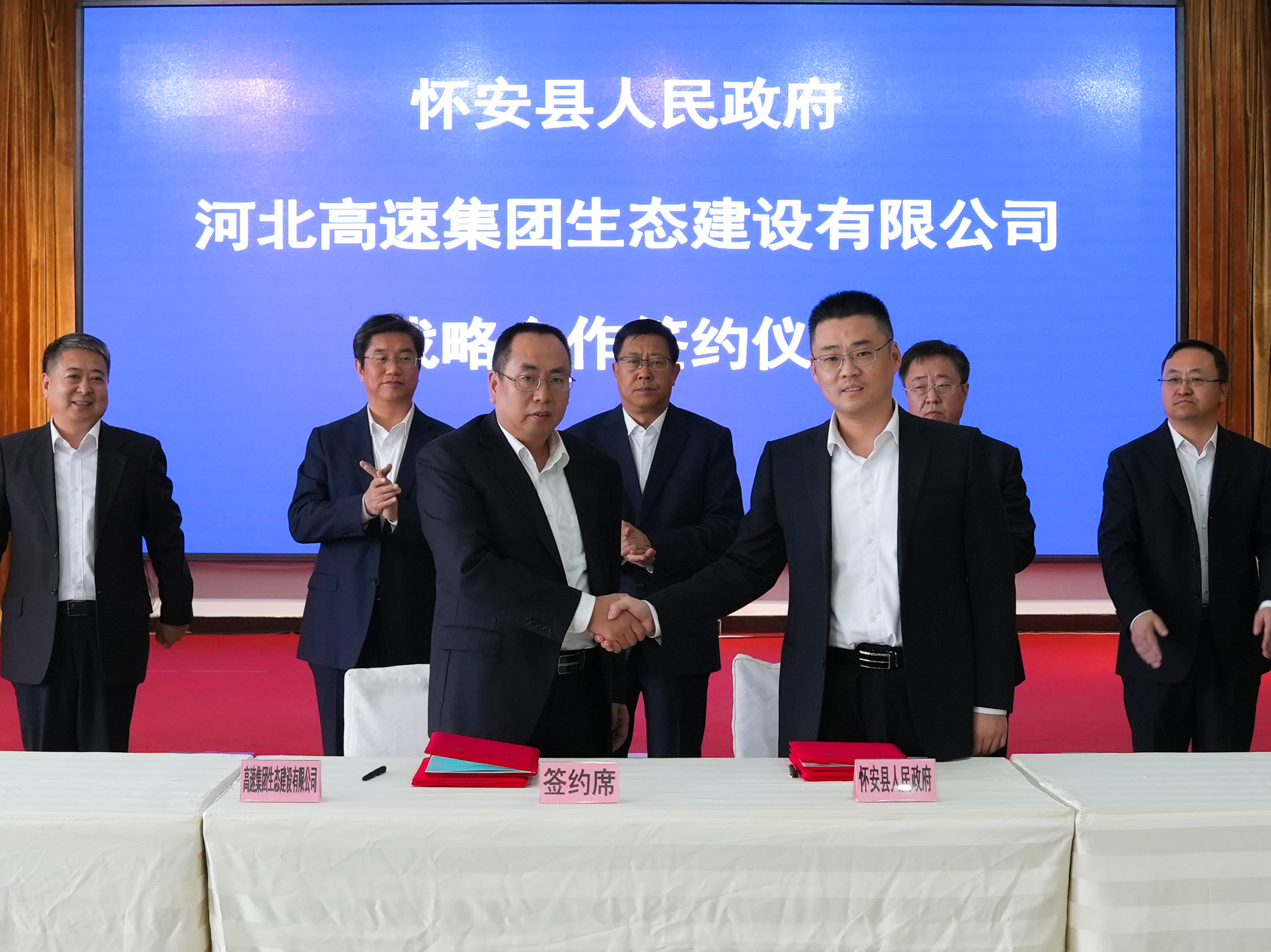 10月25日15時,河北高速集團生態(tài)建設(shè)有限公司與懷安縣人民政府在懷安縣賓館隆重舉行了戰(zhàn)略合作簽約儀式。張家口市政協(xié)黨組書記、主席高峰,張家口市人大副主任孫海東,河北高速集團黨委副書記、董事、工會主席董廣,張家口懷安縣縣委書記劉源,生態(tài)建設(shè)公司黨支部書記、董事馬明玉出席簽約儀式。懷安縣縣長孫少凱與生態(tài)建設(shè)公司總經(jīng)理焦銀禾分別代表雙方簽署了《戰(zhàn)略合作框架協(xié)議》及《土地整治(占補平衡)項目合作協(xié)議》。懷安縣副縣長高志宏主持簽約儀式。